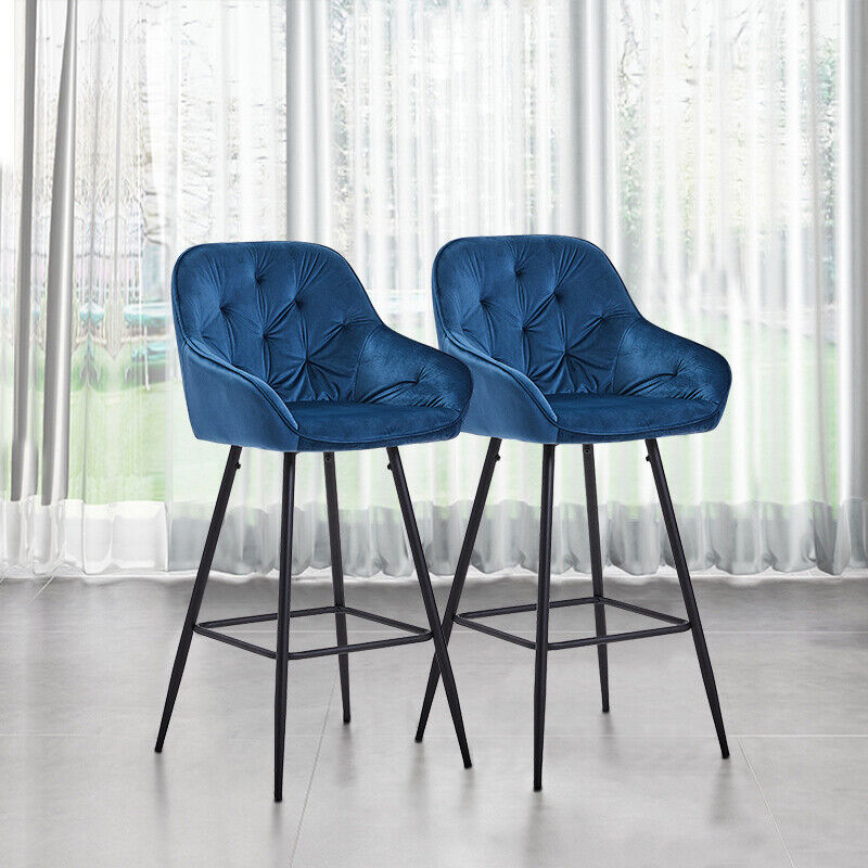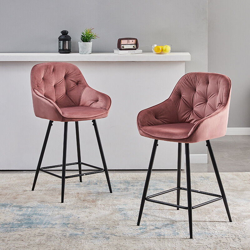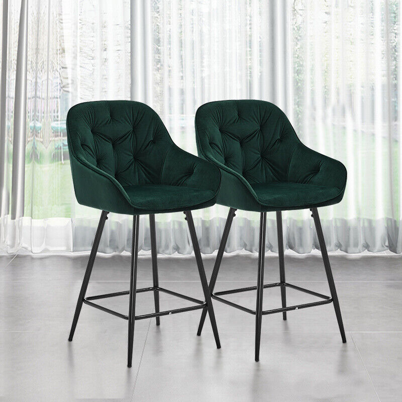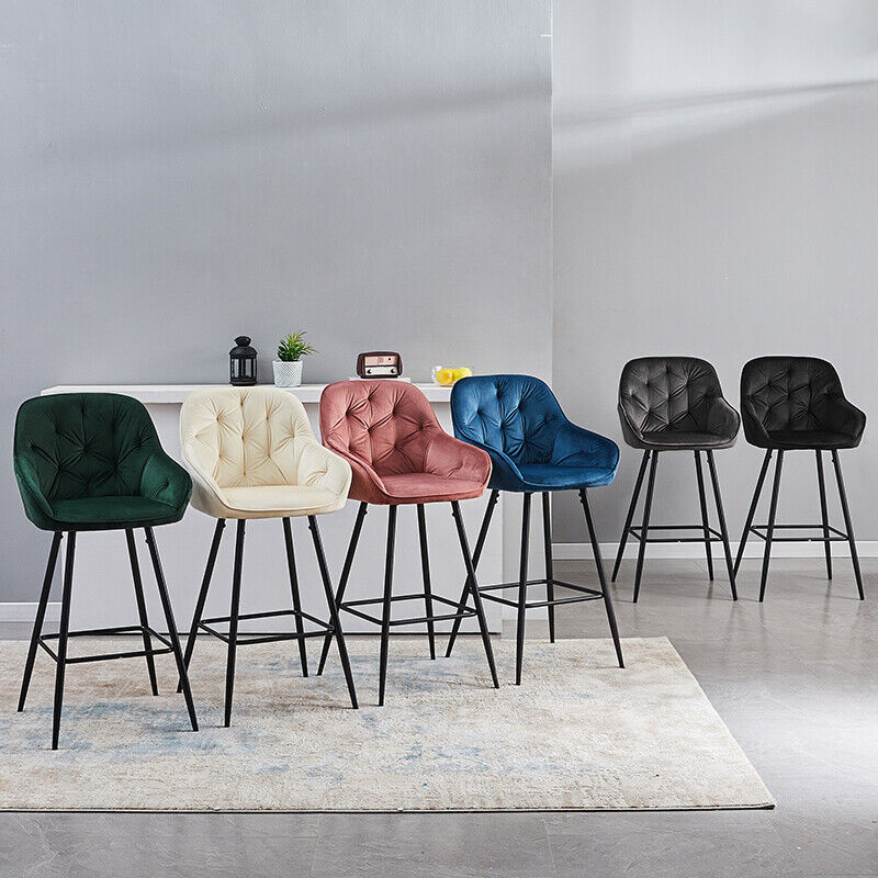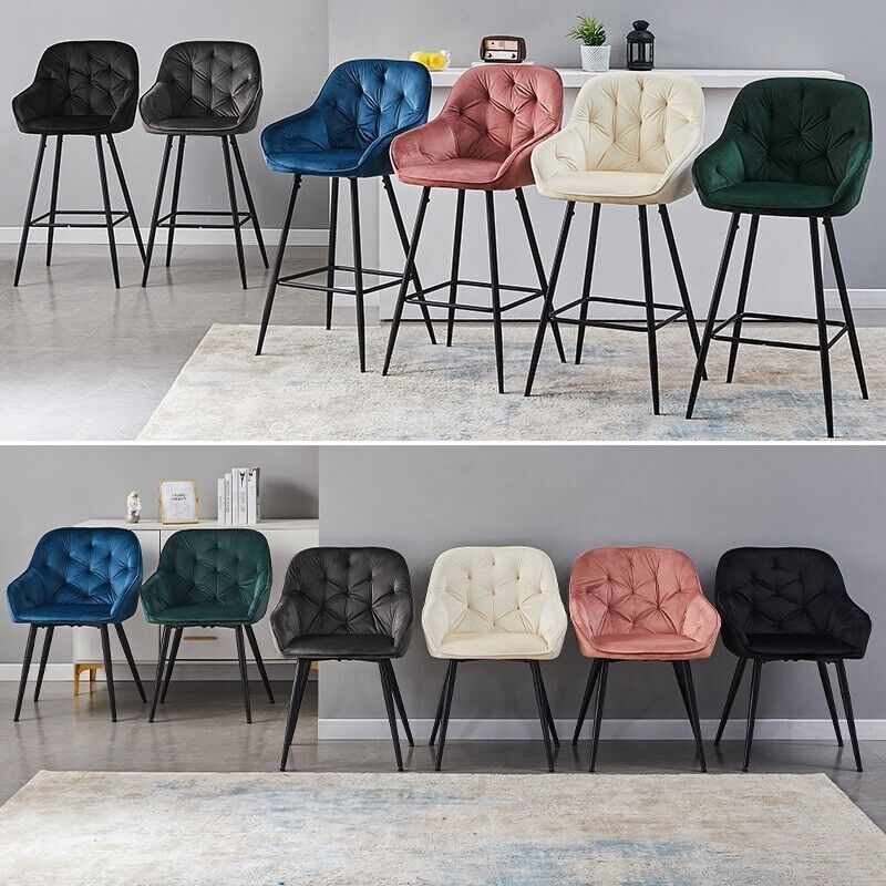 Pair Dining Chairs Bar Stools Dining Room Kitchen Tufted Seat Metal Legs