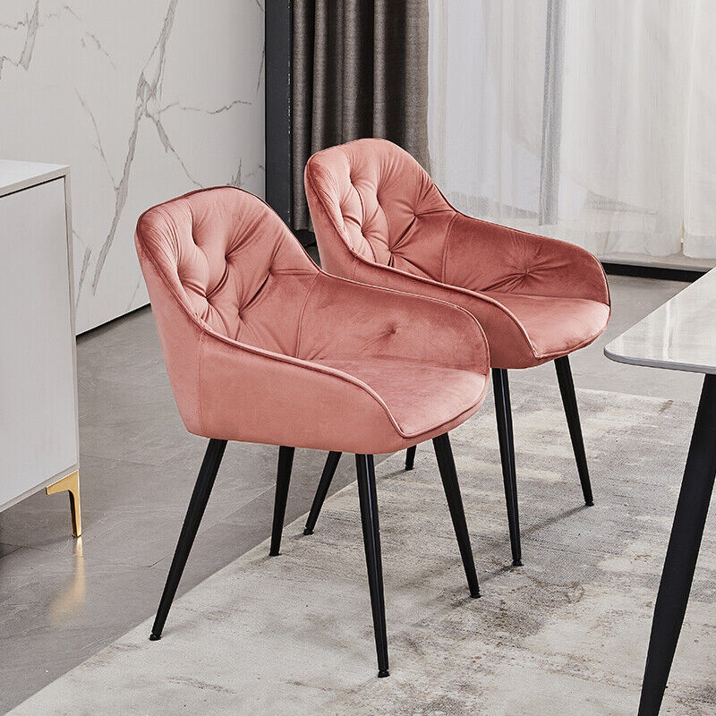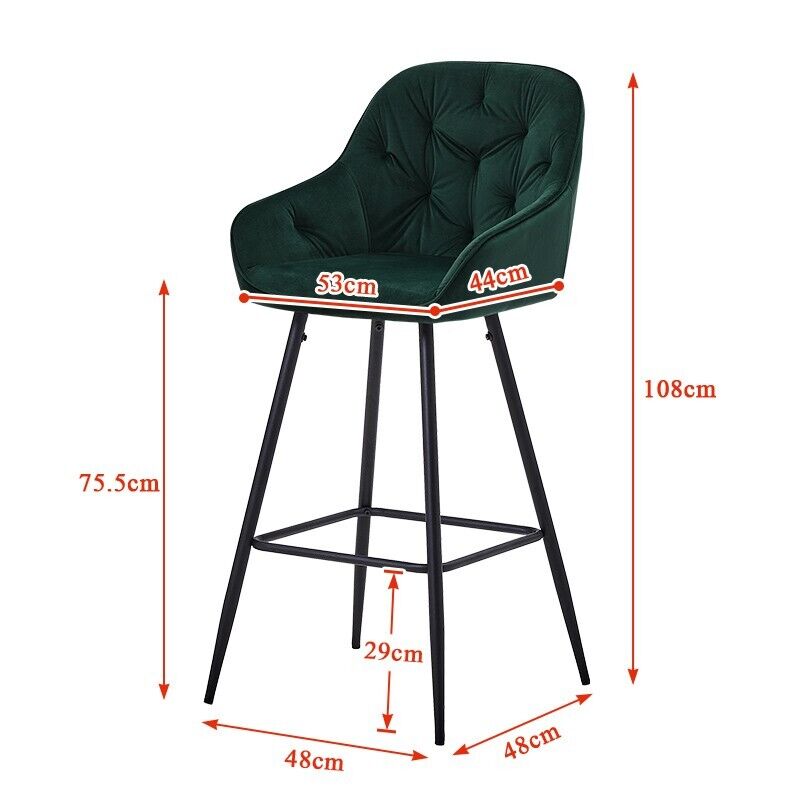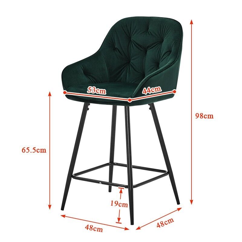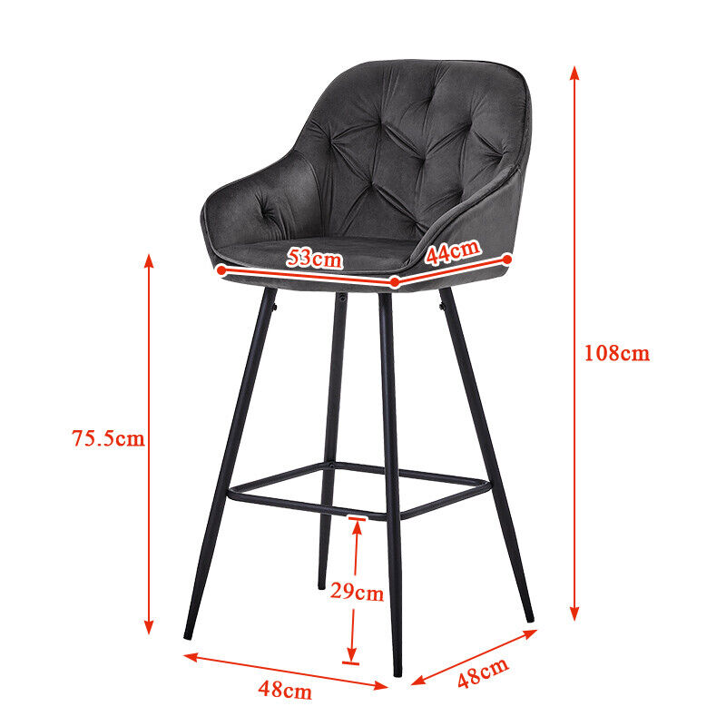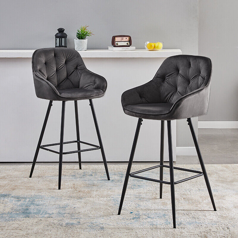 Pair Dining Chairs Bar Stools Dining Room Kitchen Tufted Seat Metal Legs