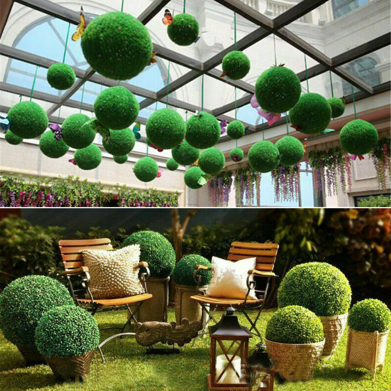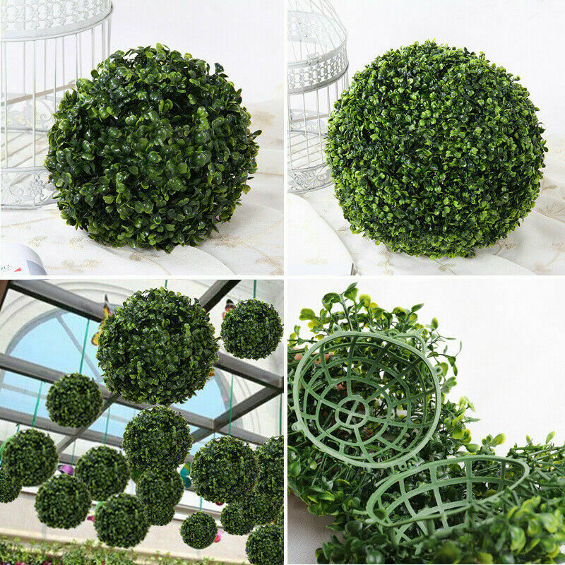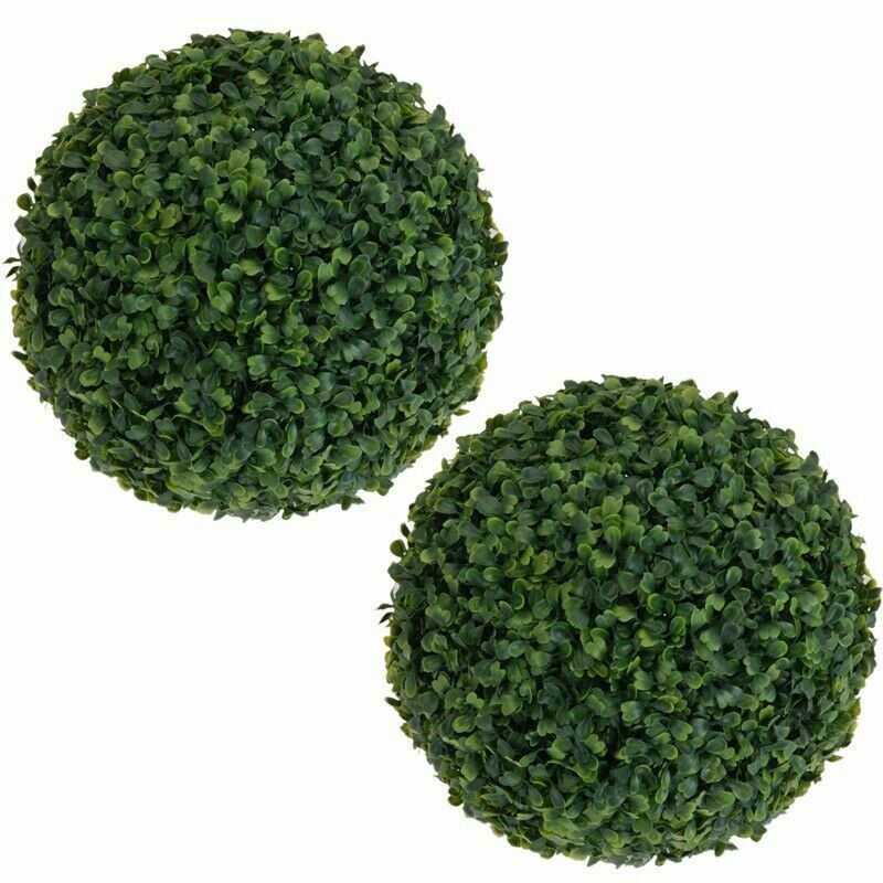 Pair of 26cm Artificial Green Boxwood Buxus Topiary Grass Hanging Ball Garden UK