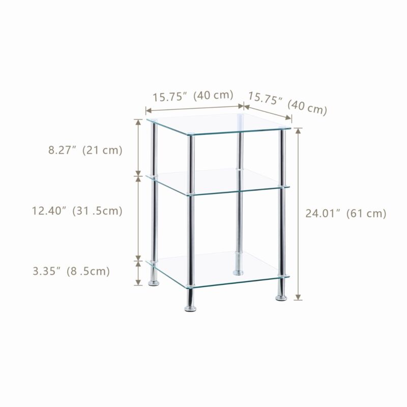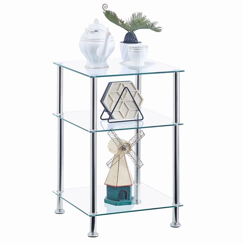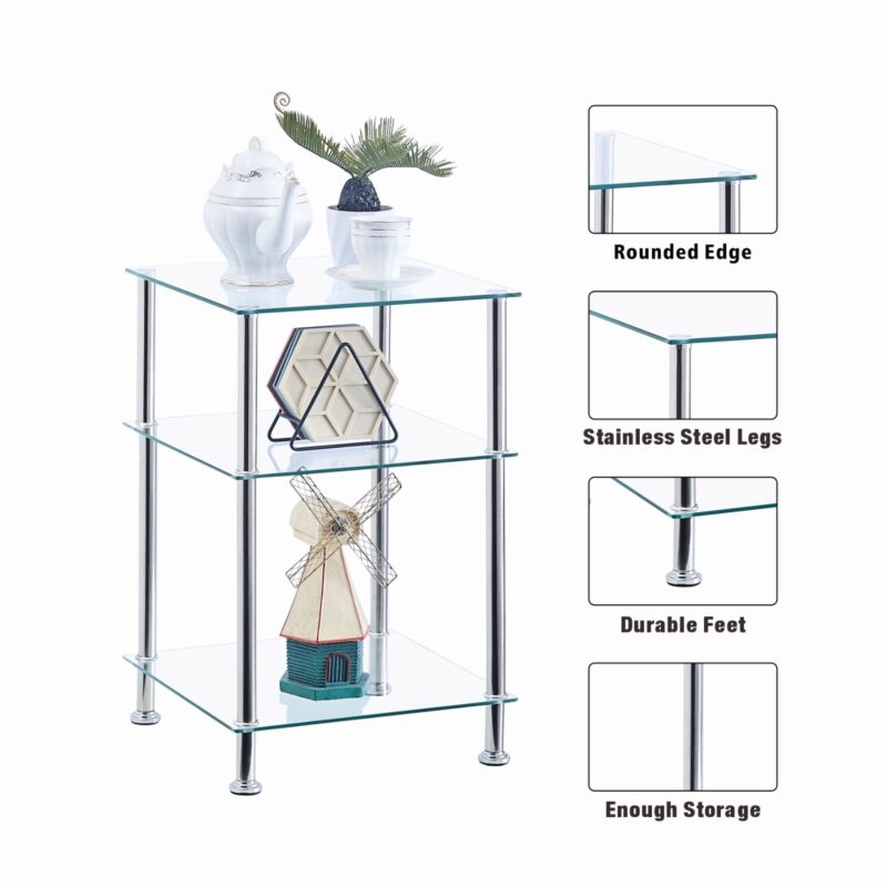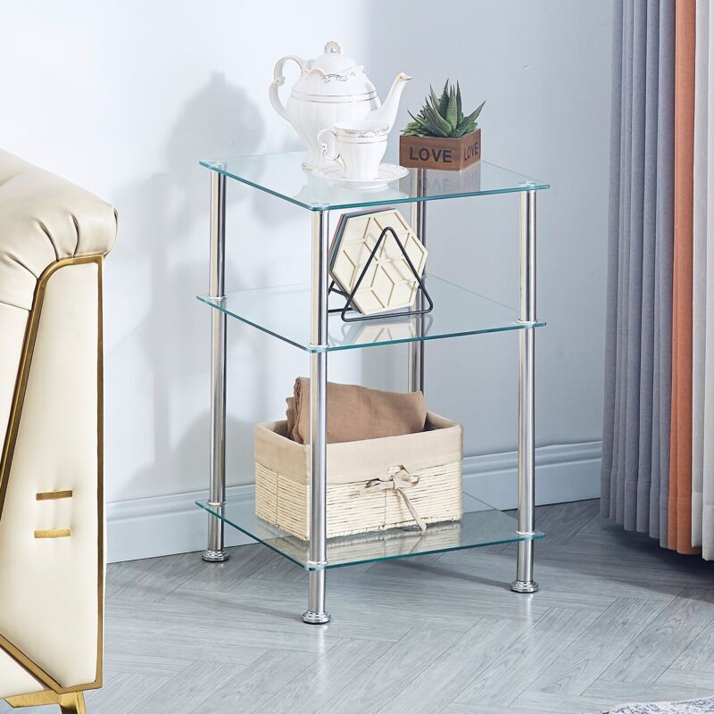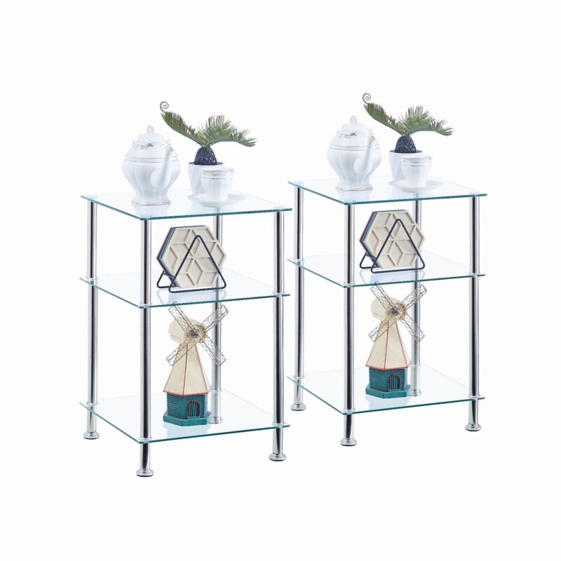 Pair of 3 Tiers Square Clear Tempered Glass Sofa Side End Table Bedside Table