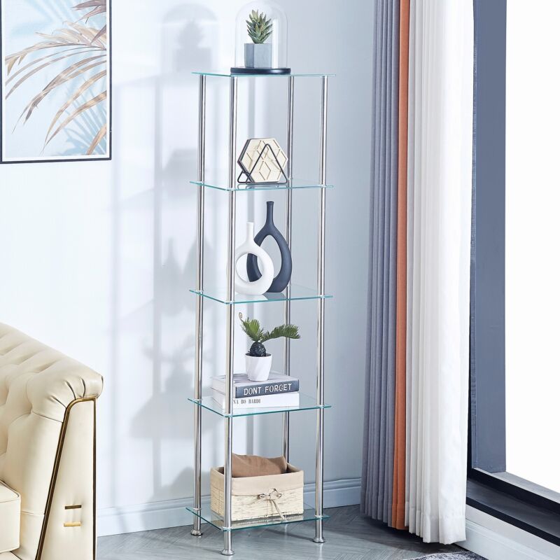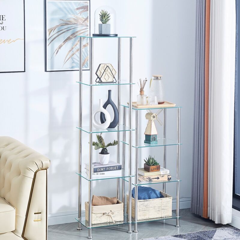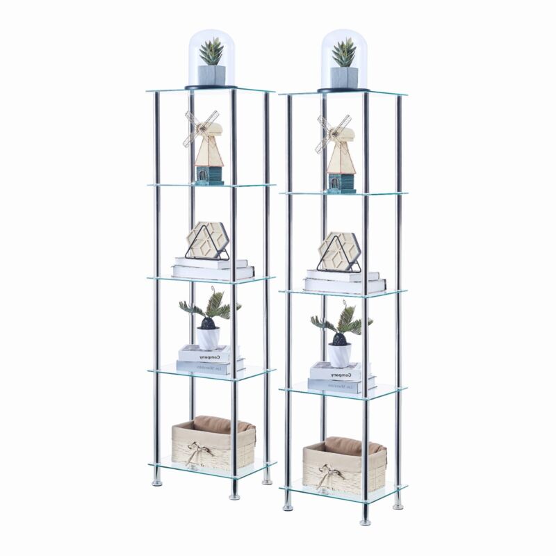 Pair of 5 Tiers Clear Tempered Glass Side End Lamp Sofa Table with Storage Shelf