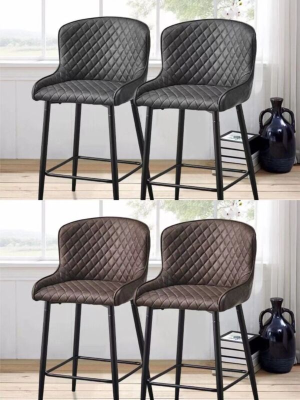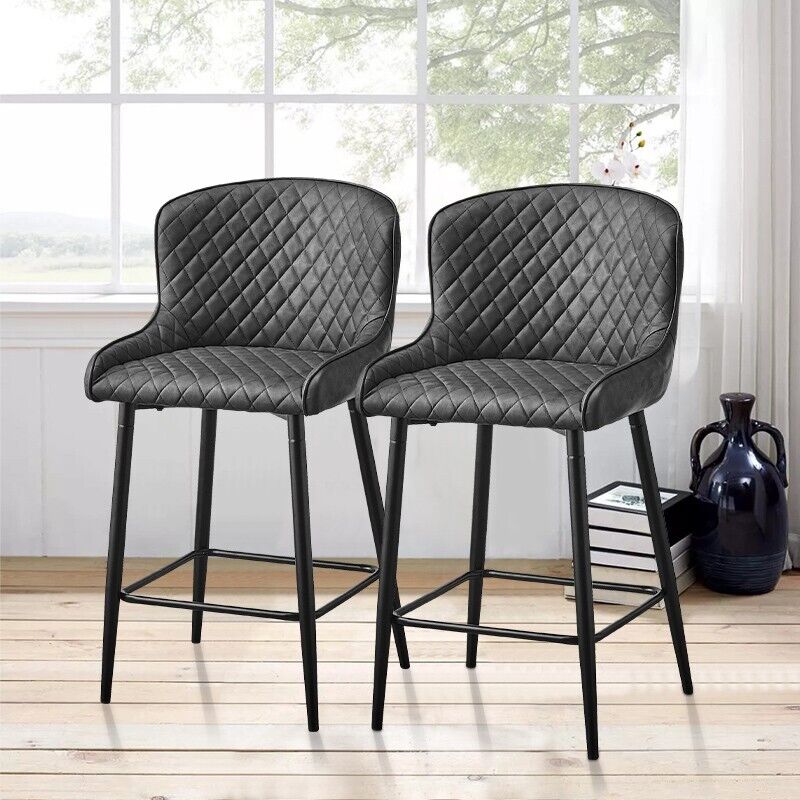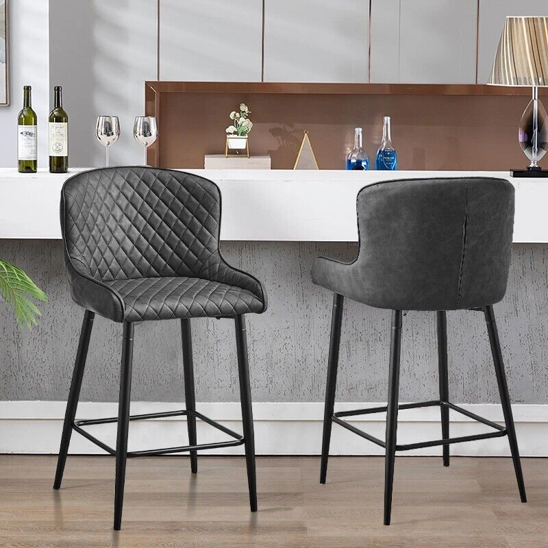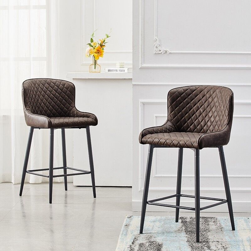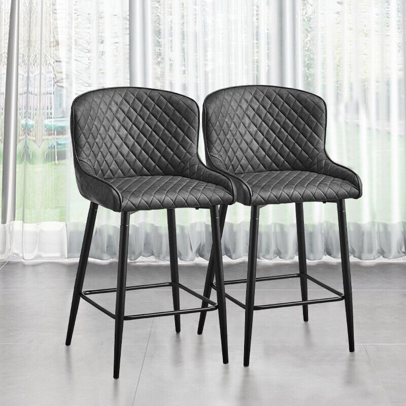 Pair of Bar Stools Faux Leather Padded Seats Metal Legs Bar Chairs Kitchen