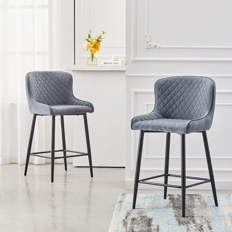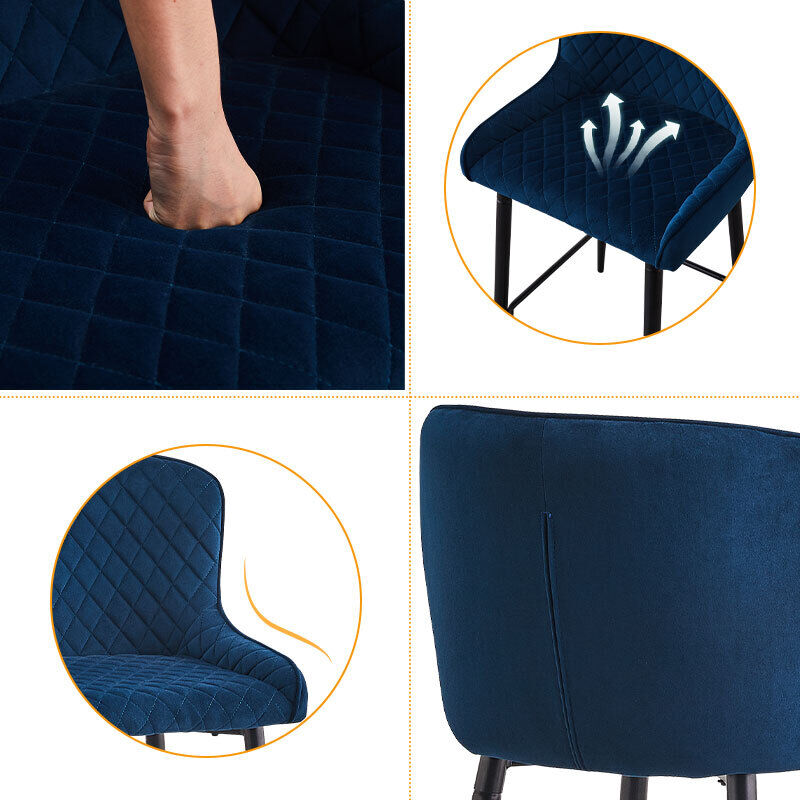 Pair of Barstools Velvet Bar Chair Blue Black Grey Padded Chair Kitchen Modern