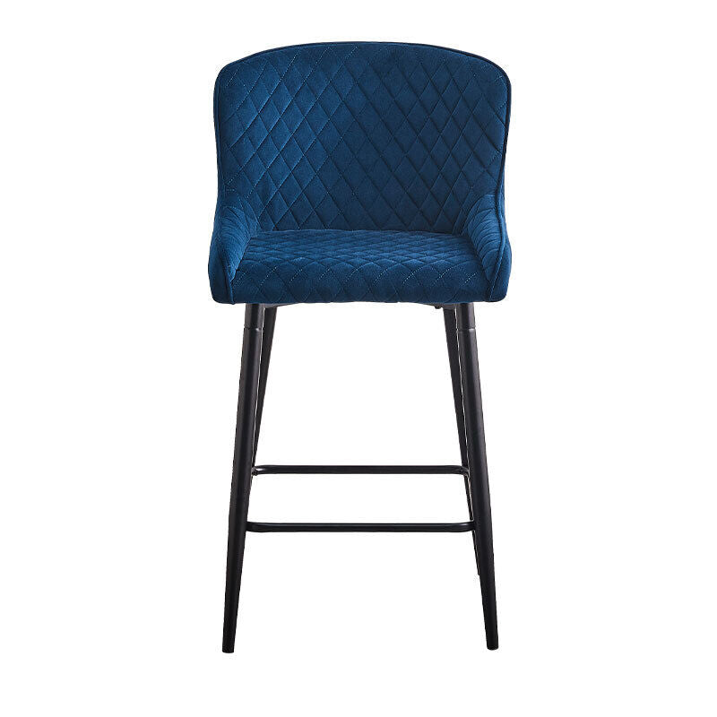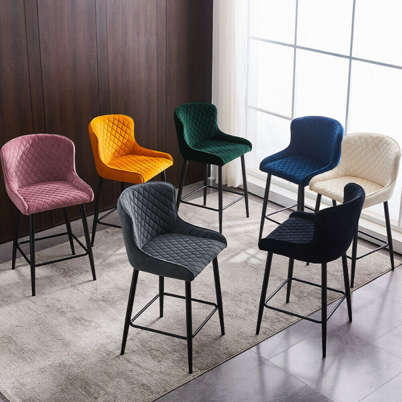 Pair of Barstools Velvet Bar Chair Blue Black Grey Padded Chair Kitchen Modern
