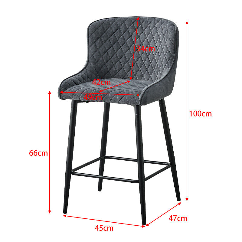 Pair of Barstools Velvet Bar Chair Blue Black Grey Padded Chair Kitchen Modern