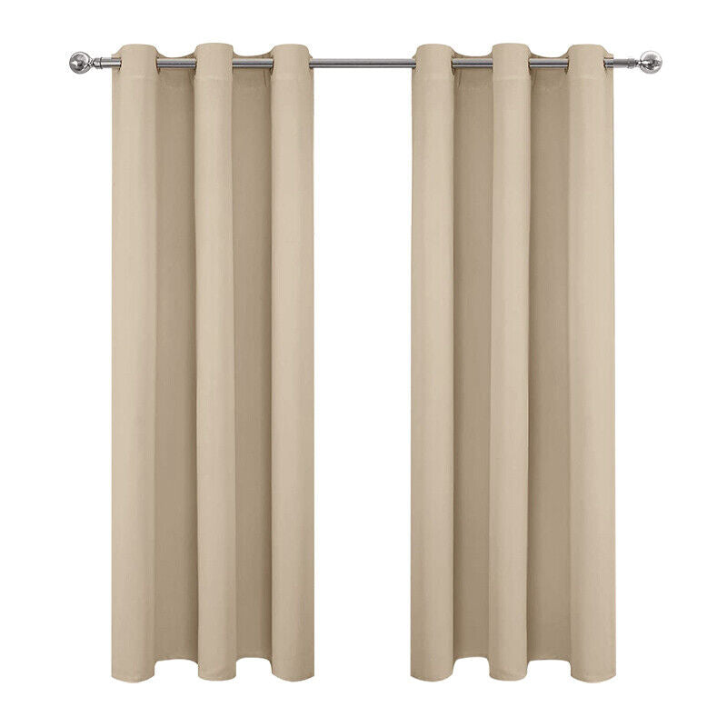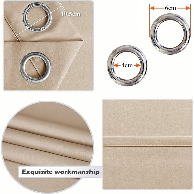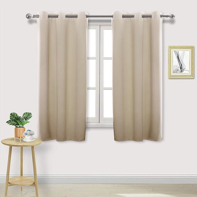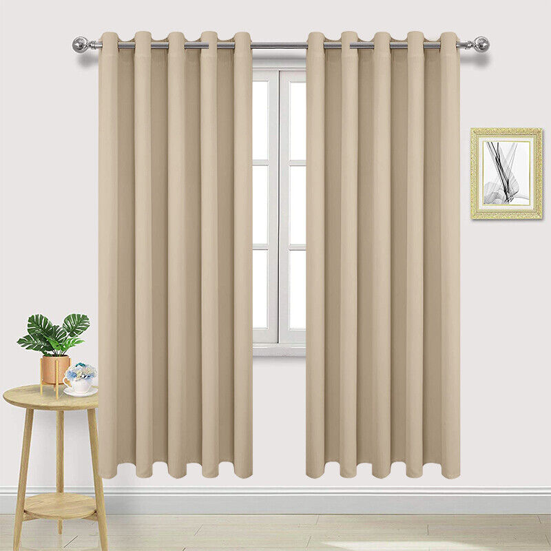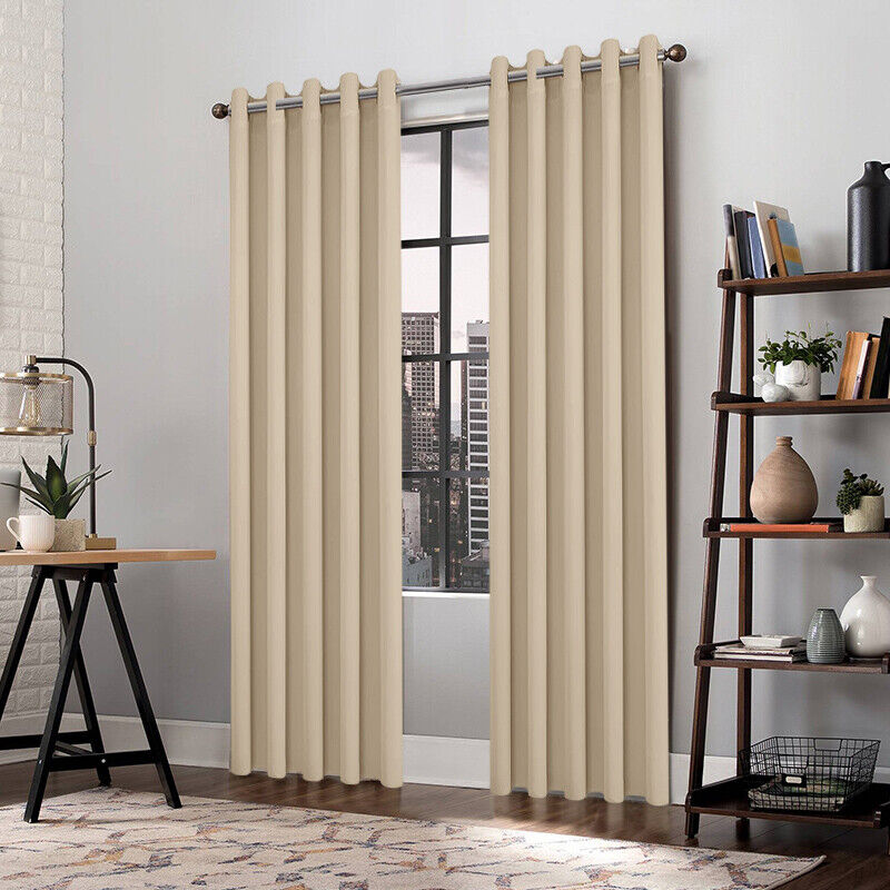 Pair of Beige Curtain for Noise Reducing Bay Window Thermal Drapery Bedroom New