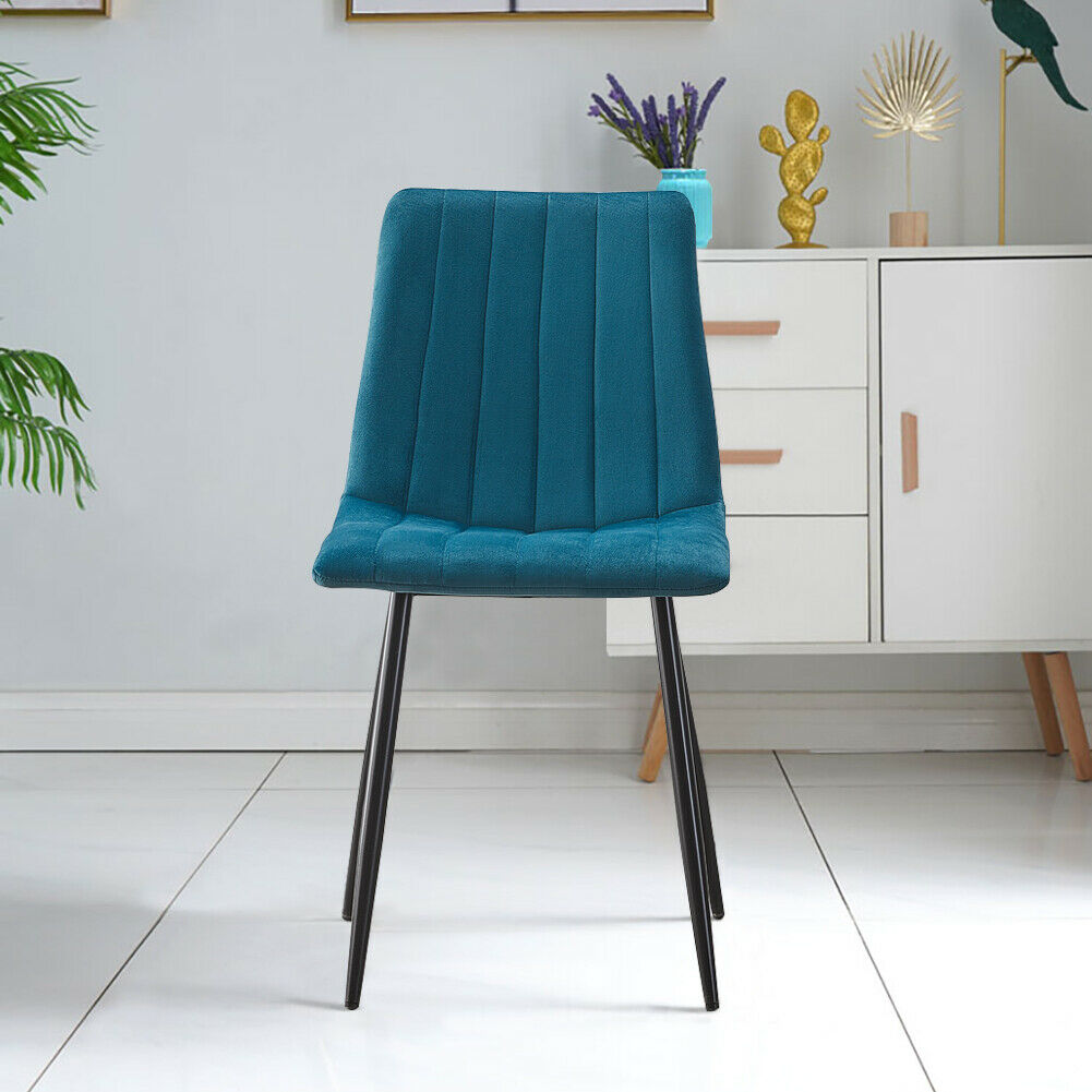 Pair of Blue Velvet Fabric Chairs High Round Back Padded Seat Home Kitchen Chair