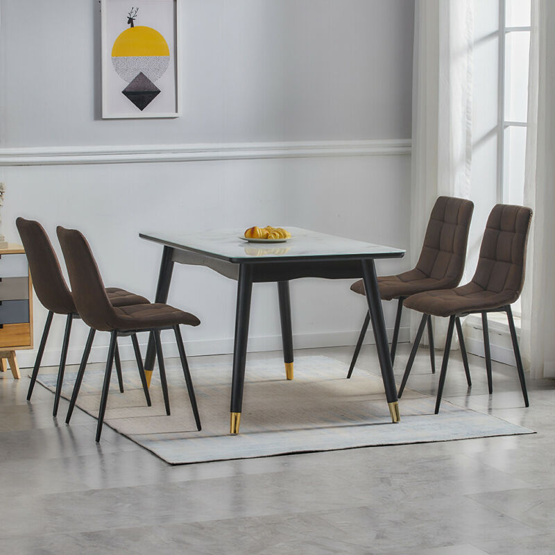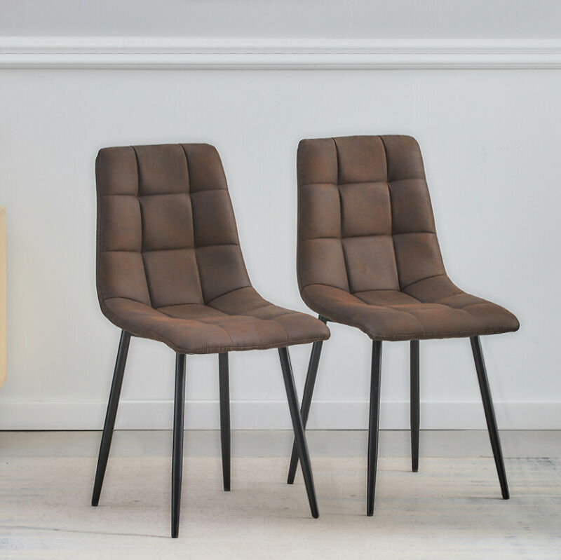 Pair of Brown Faux Leather Dining Chairs Kitchen Padded Soft Seat Metal Leg