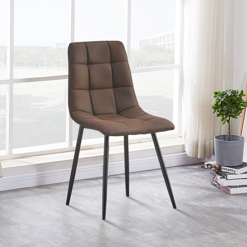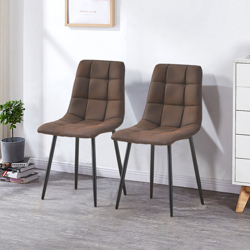 Pair of Brown Faux Leather Dining Chairs Kitchen Padded Soft Seat Metal Leg
