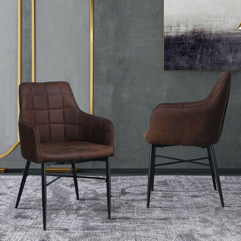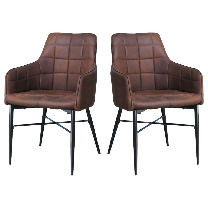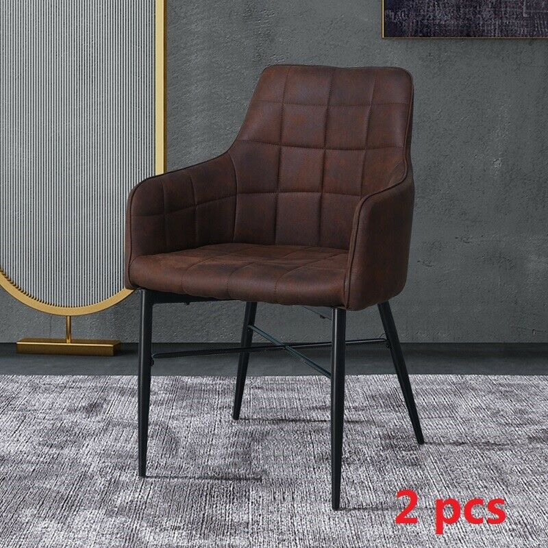 Pair of Brown Faux Leather/PU Dining Chairs Armchairs Kitchen Office Chair
