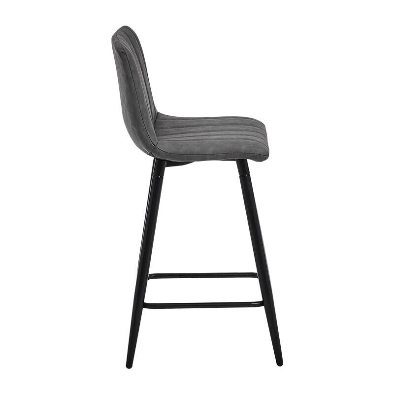 Pair of Grey Bar Stools Stripe Padded Seat Metal Legs Breakfast Stools Modern