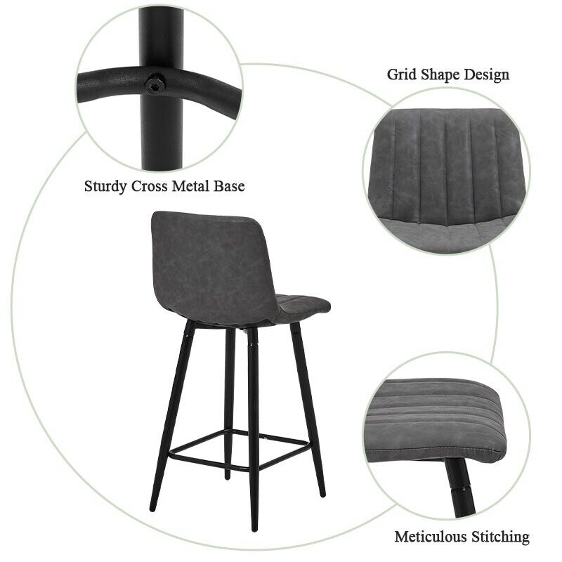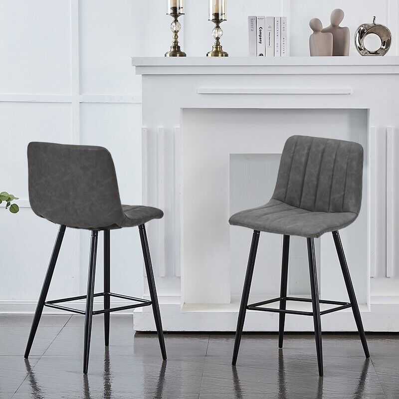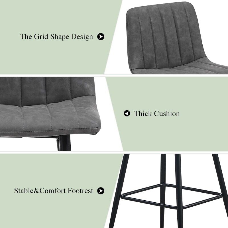 Pair of Grey Bar Stools Stripe Padded Seat Metal Legs Breakfast Stools Modern