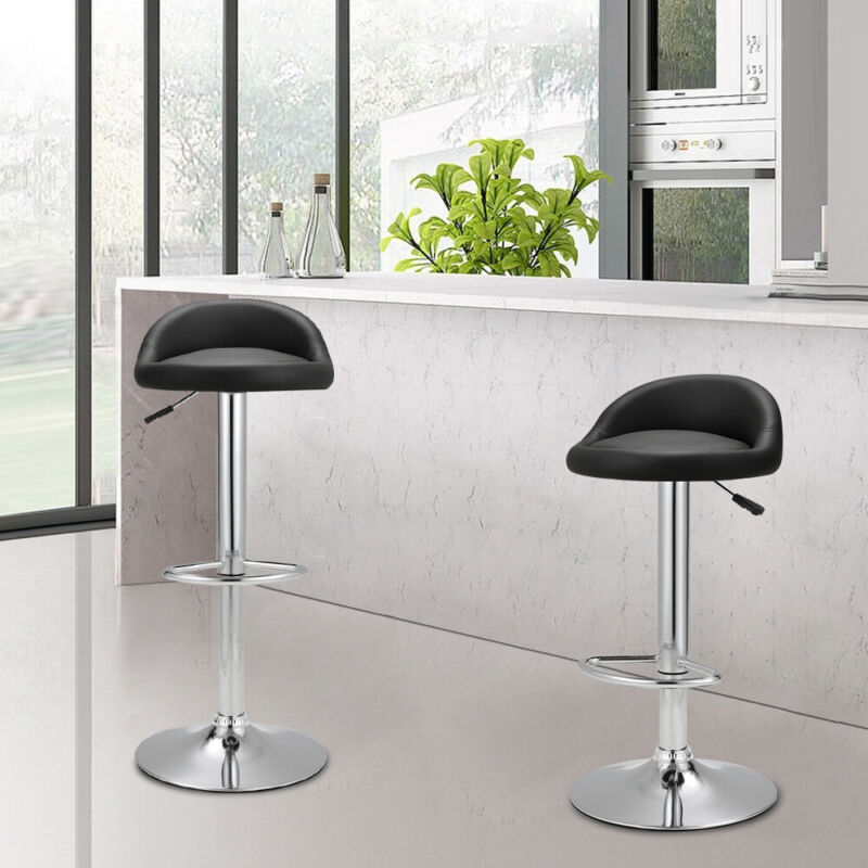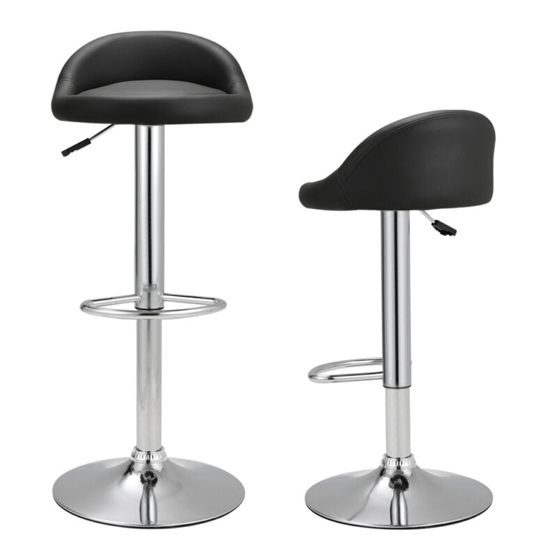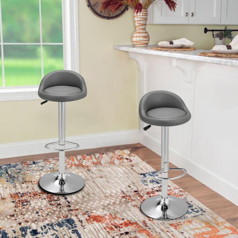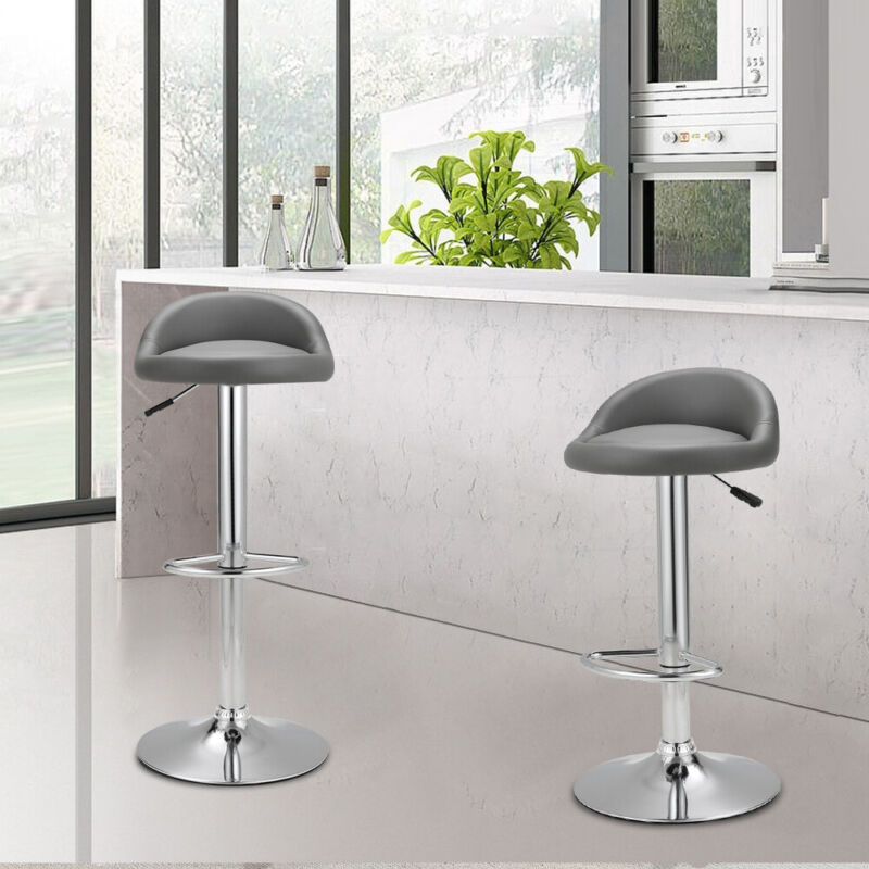 Pair of Grey / Black Bar Stools Gas Lift Swivel Home Kitchen Breakfast Chairs