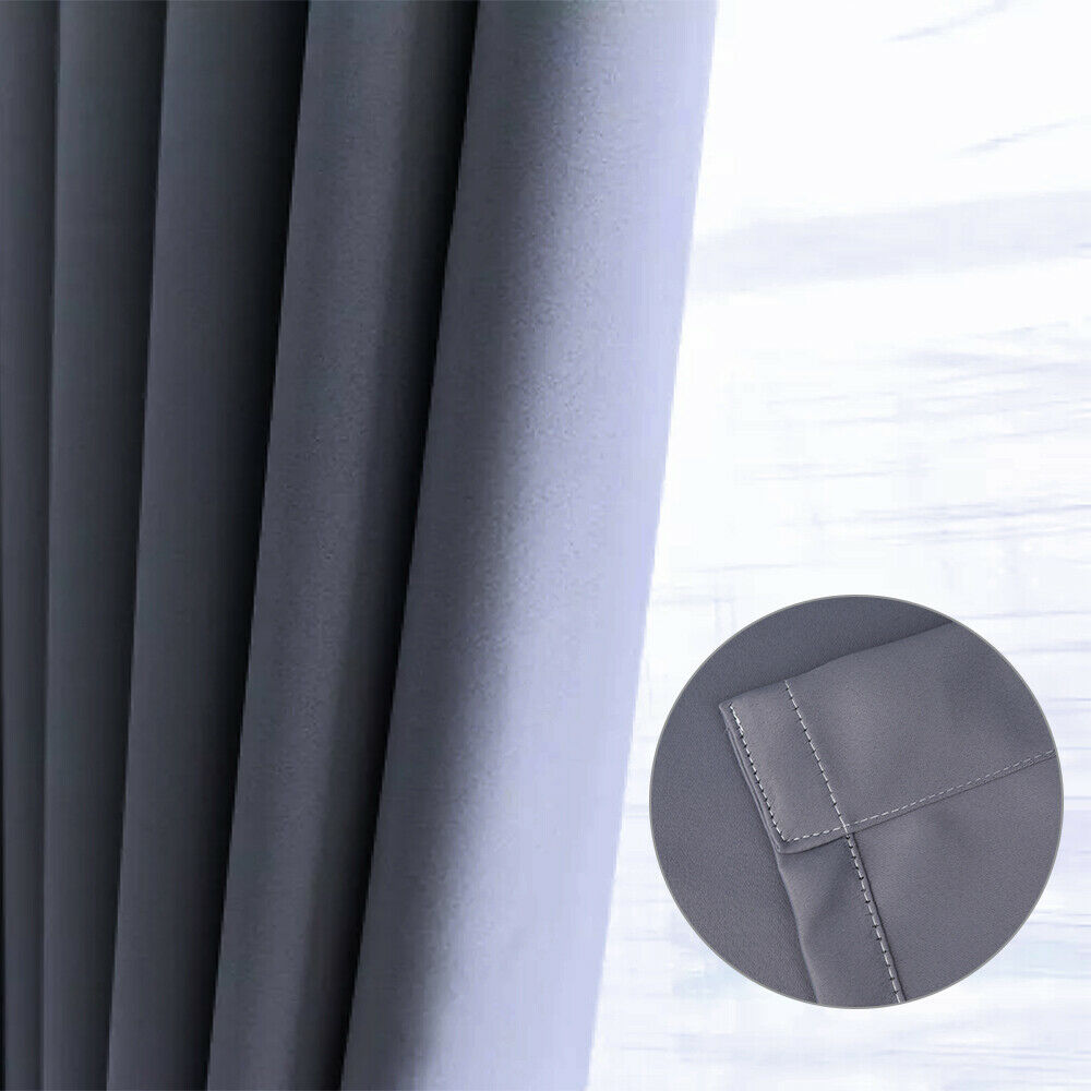 Pair of Grey Thermal Blackout Curtain Eyelet Ring Top With Tie Backs Ready Made