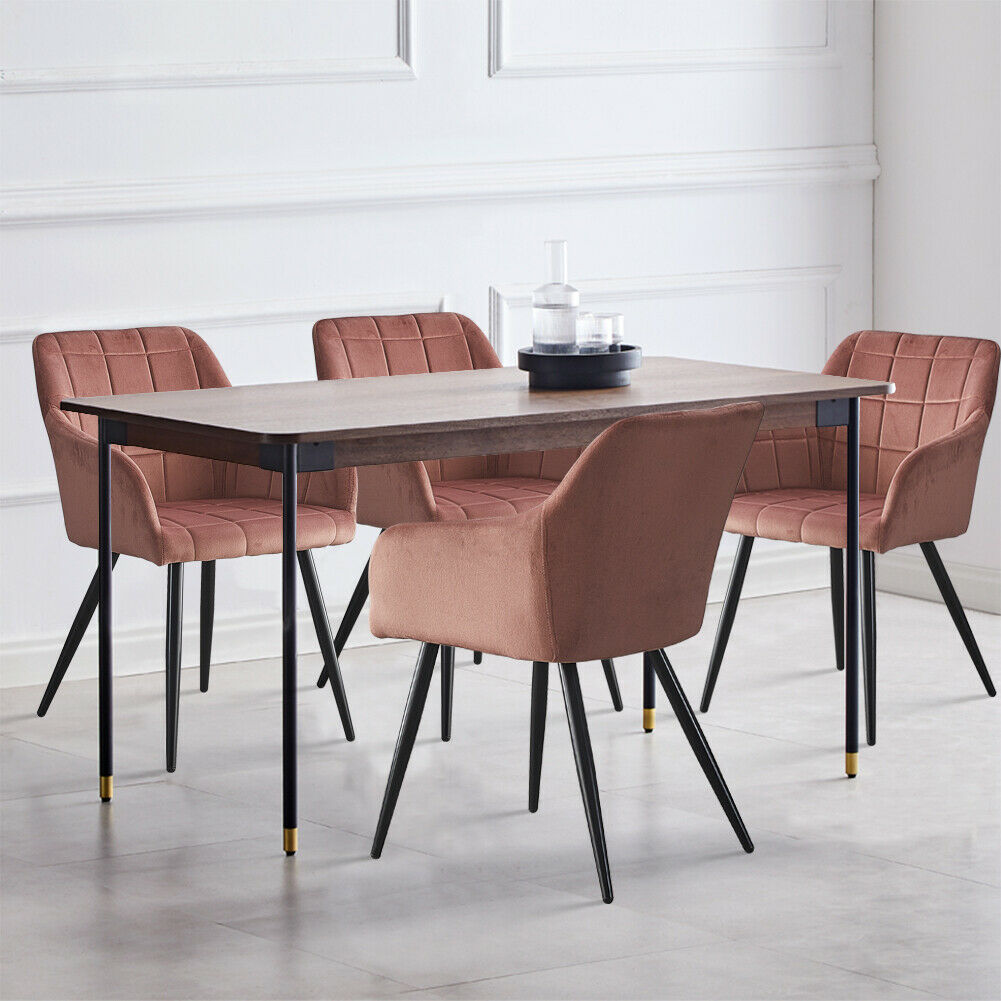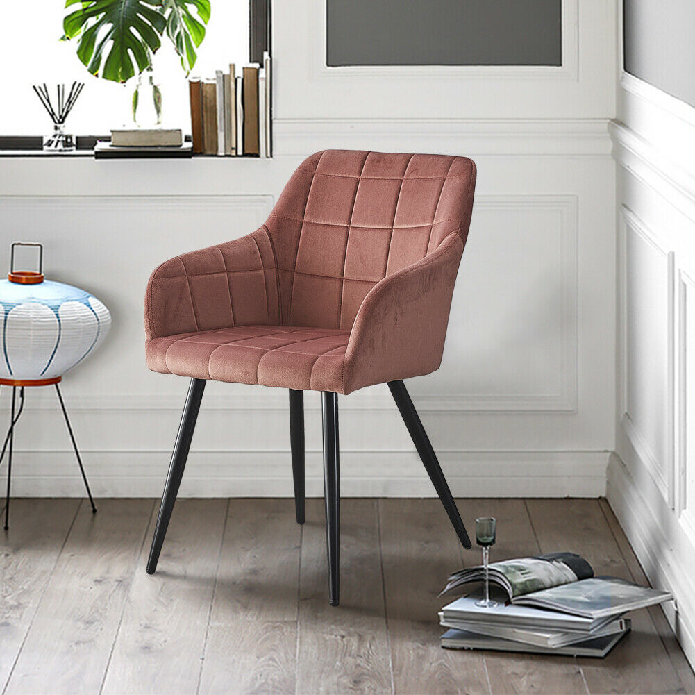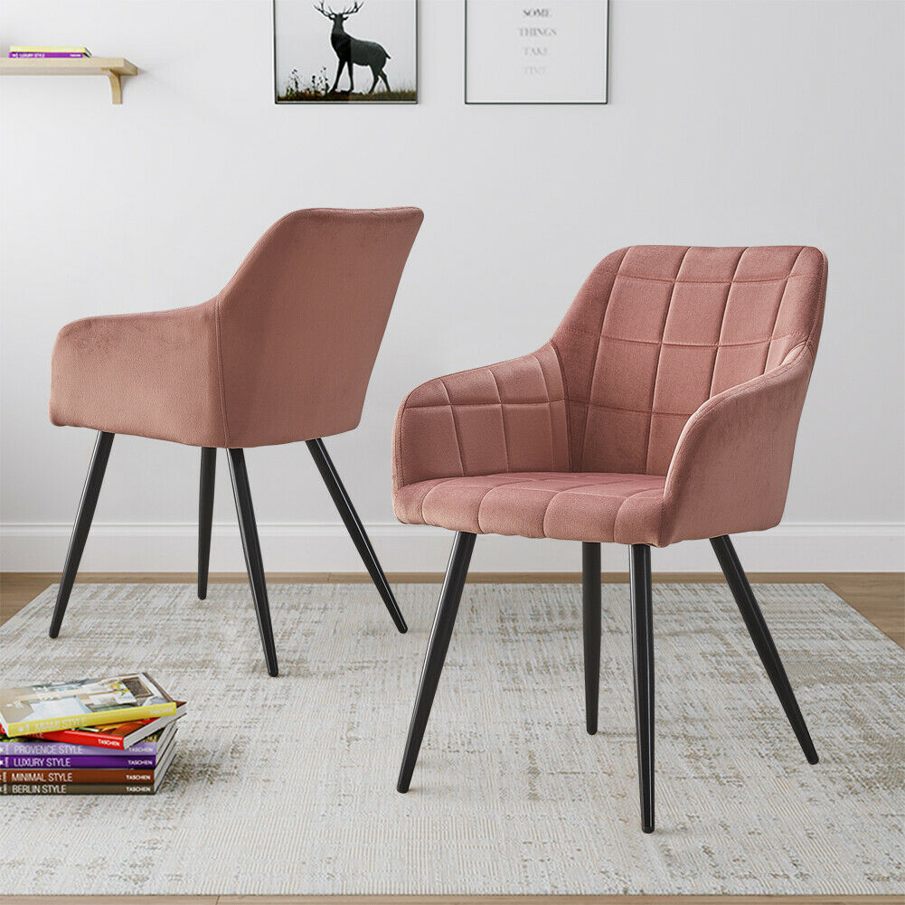 Pair Of Modern Dining Chairs Pink Velvet Armchairs Metal Legs Home Dining Room
