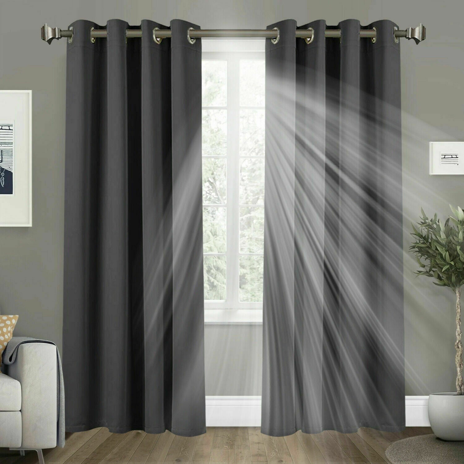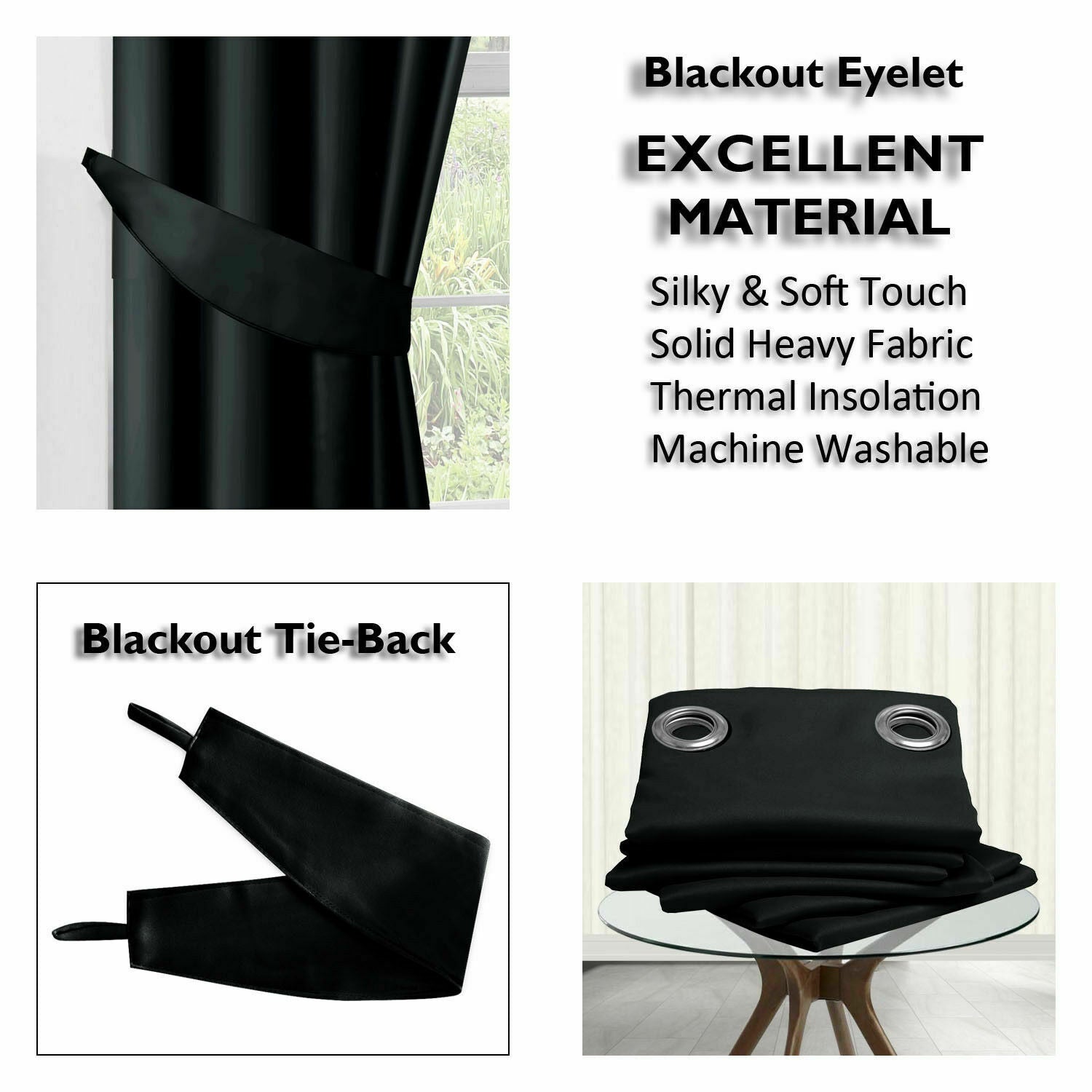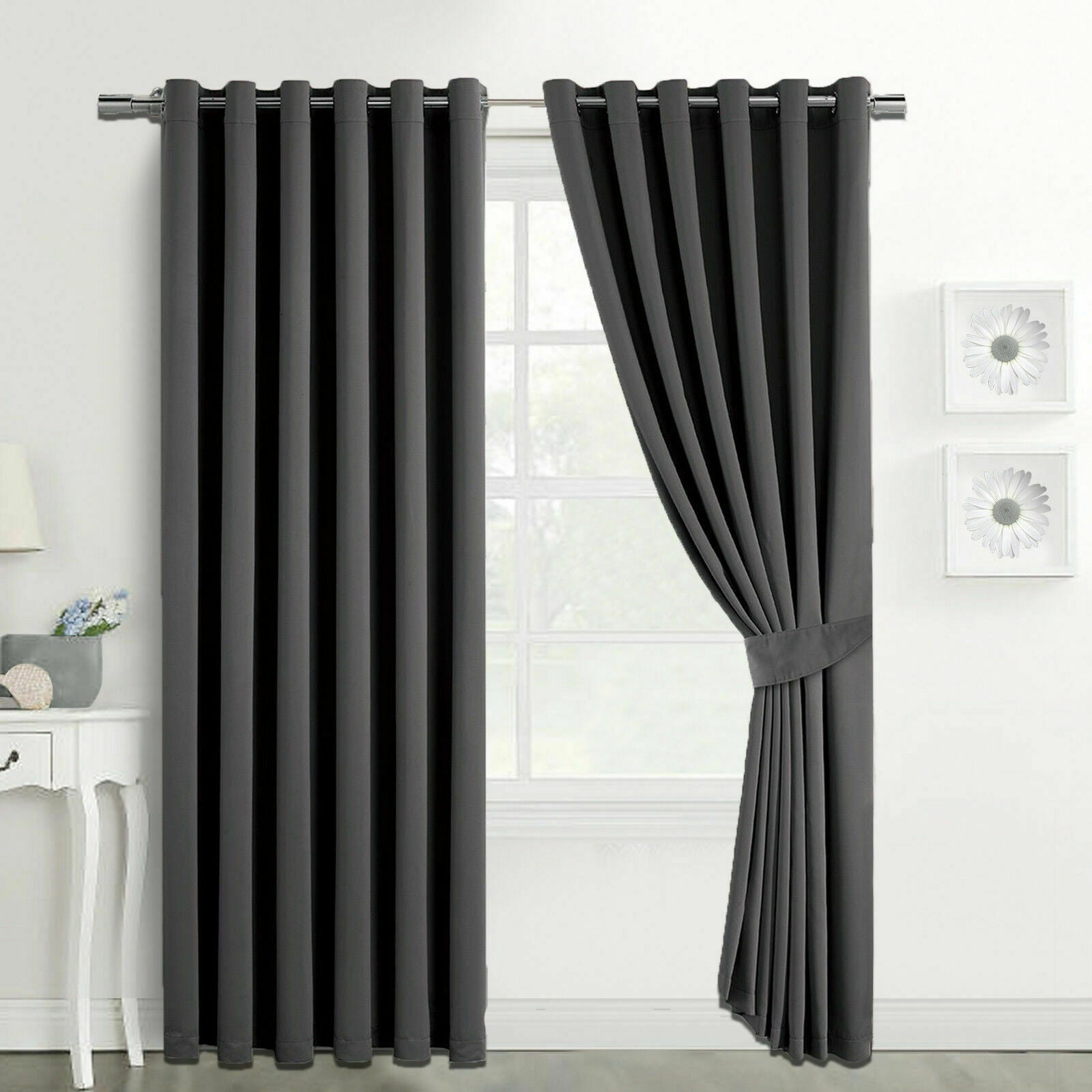 Pair of THERMAL BLACKOUT CURTAINS READY MADE EYELET TOP + TIE BACKS DOOR CURTAIN