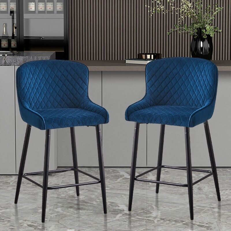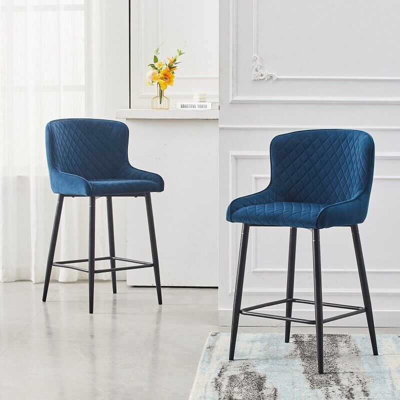 Pair of Velvet Blue Bar Stools Bar Chair with Soft Seat Home Kitchen Modern