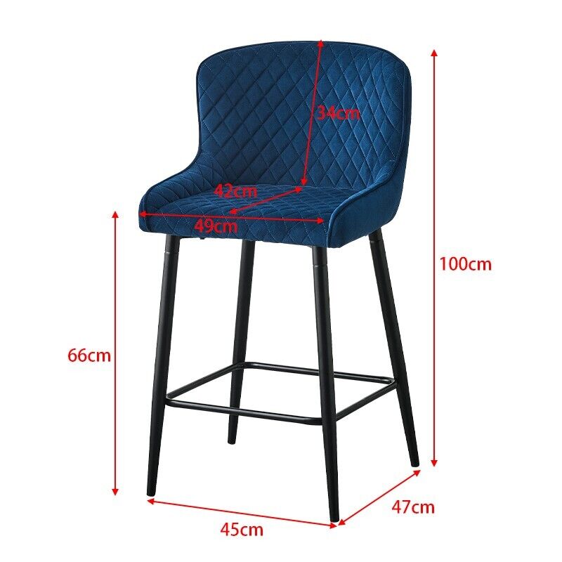 Pair of Velvet Blue Bar Stools Bar Chair with Soft Seat Home Kitchen Modern