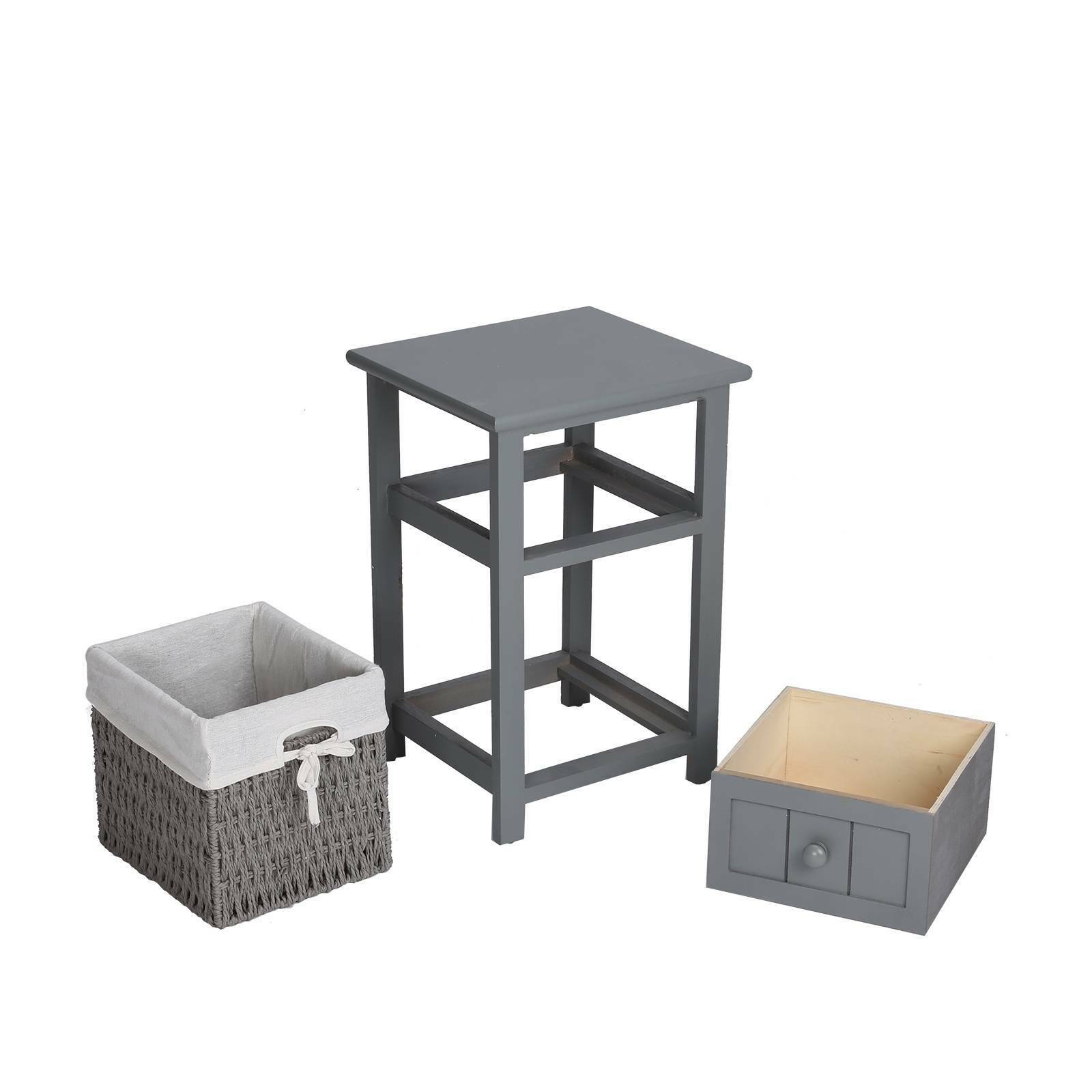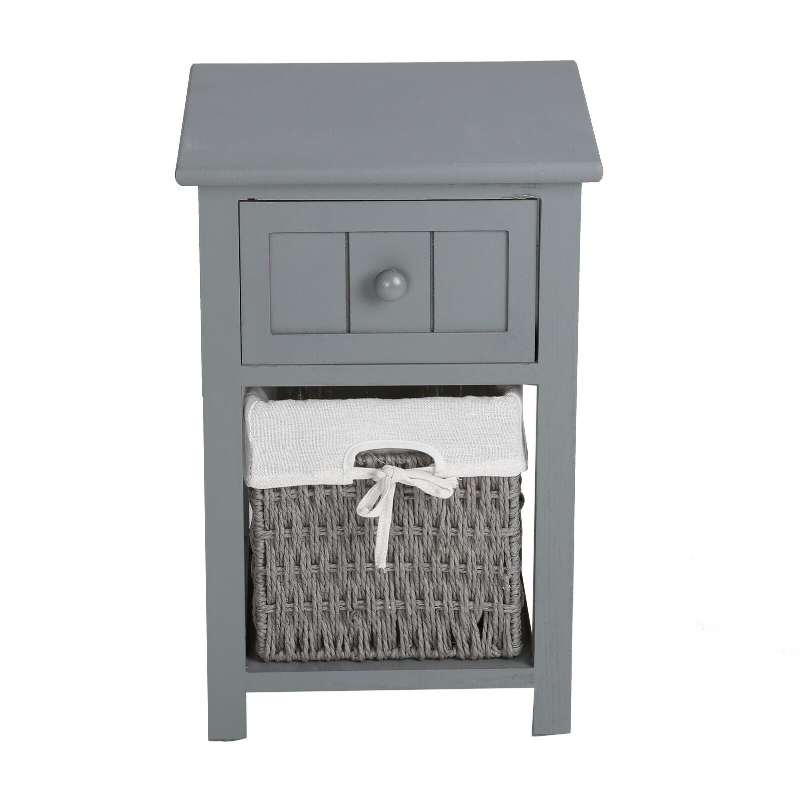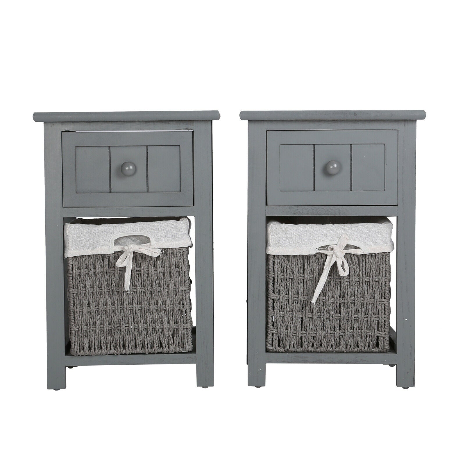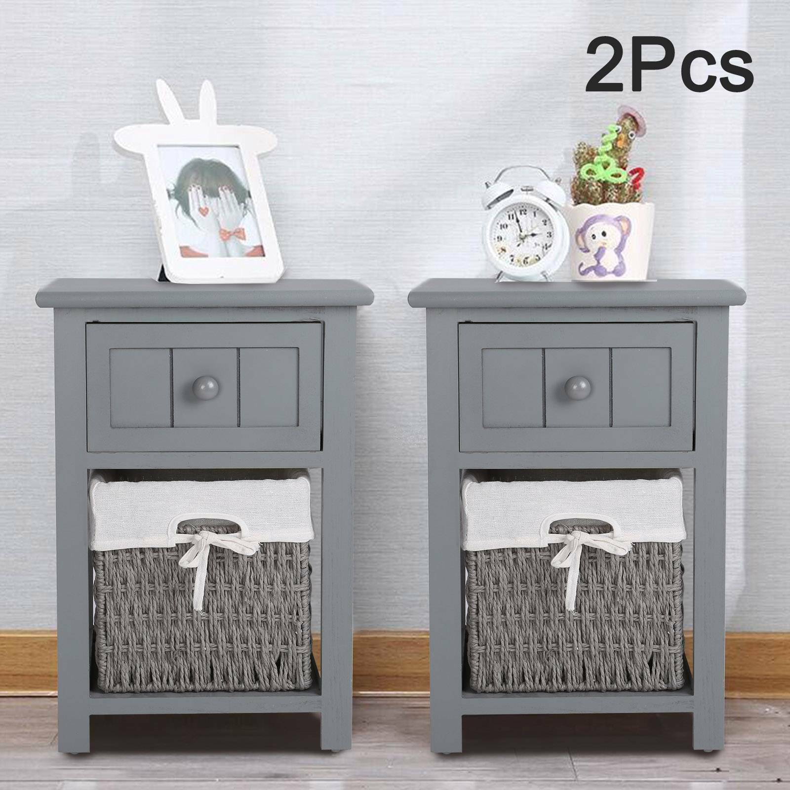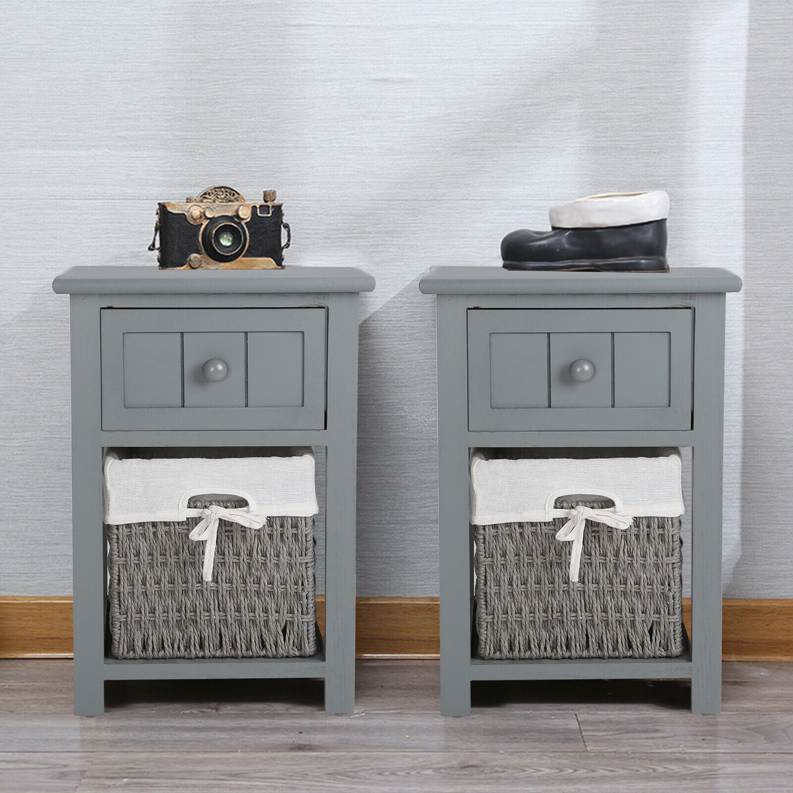 Pair of Wooden Bedside Tables Night Stand Cabinet Storage Drawer Wicker Baskets