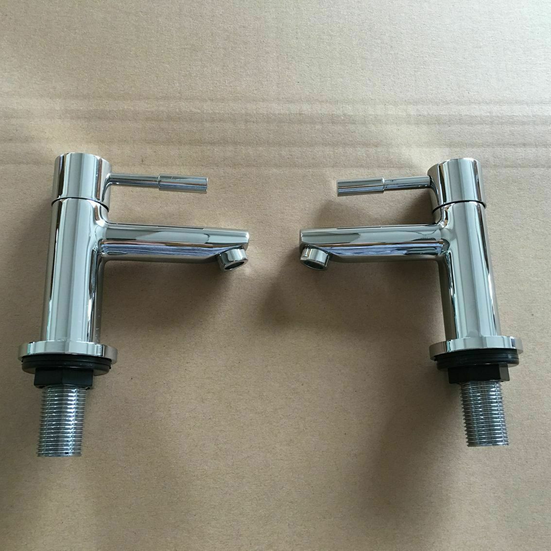 Pair Taps Twin Tap Kitchen Basin Sink Hot and Cold Chrome Bathroom Brass Faucet