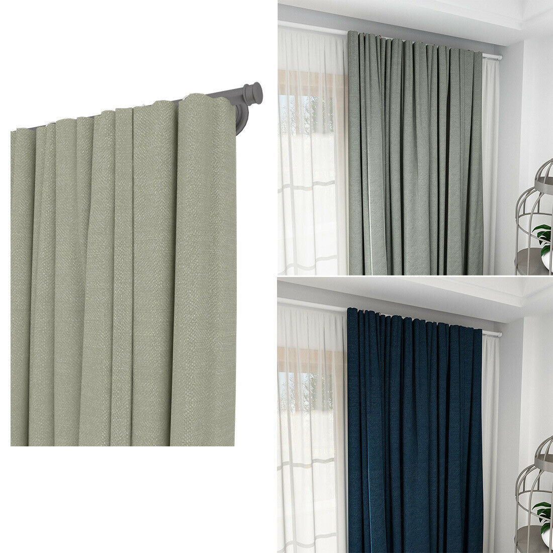 Pair Thick Blackout Eyelet Ring Top Curtains Pencil Pleat Panel Door Curtain Gre