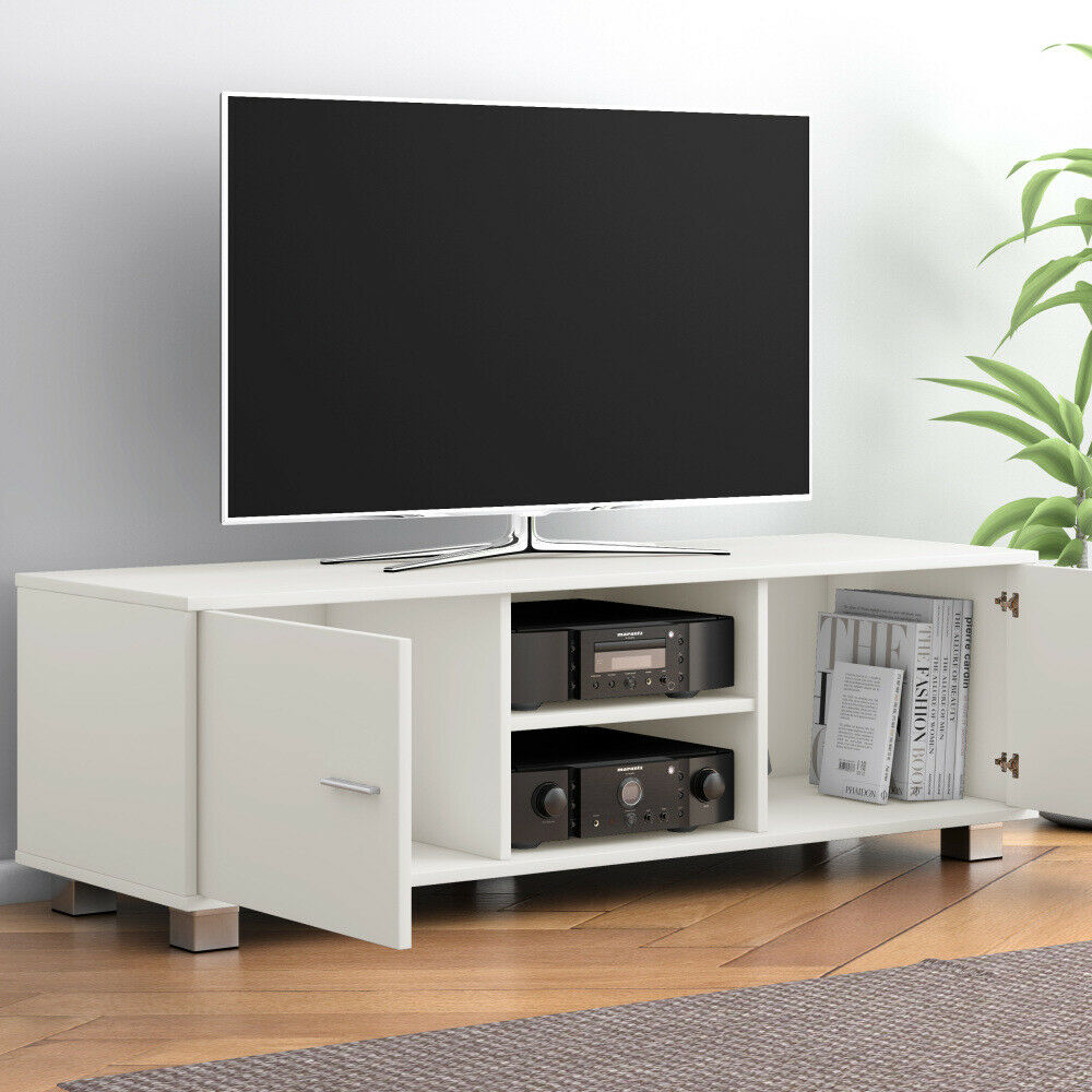 Panana White TV Stand Cabinet Unit 2 Door 2 Shelves Cupboard Entertainment New