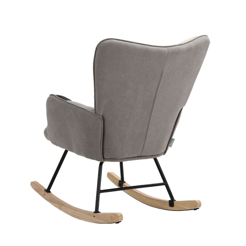 Patchwork Linen Fabric Rocking Chair Padded Seat Tub Armchair Rocker Single Sofa