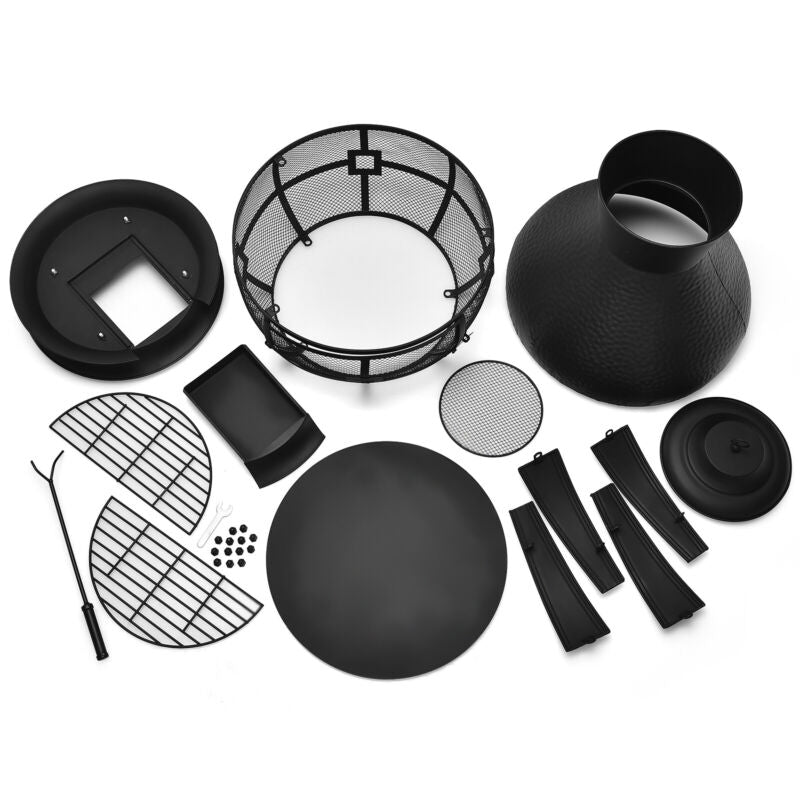 Patio Fire Pit Chimenea Fireplace Wood/Coal Burning Heater W/ 2-piece Log Grate