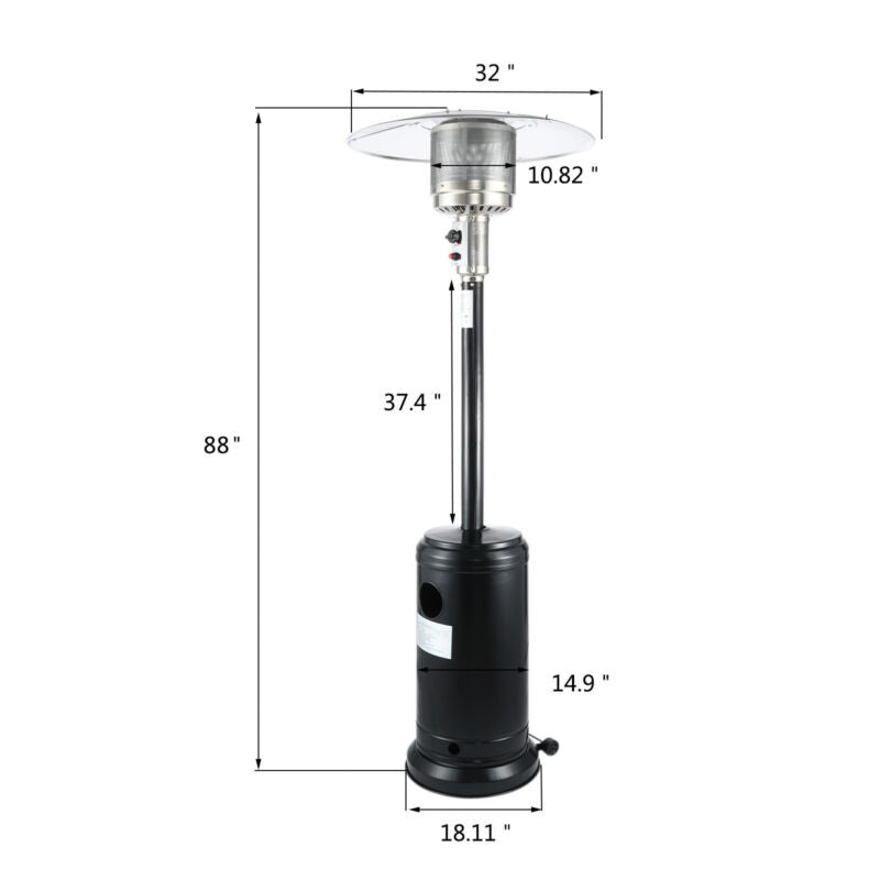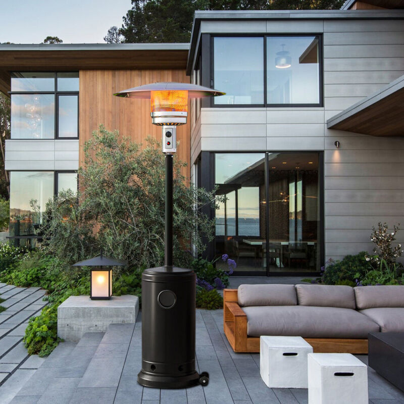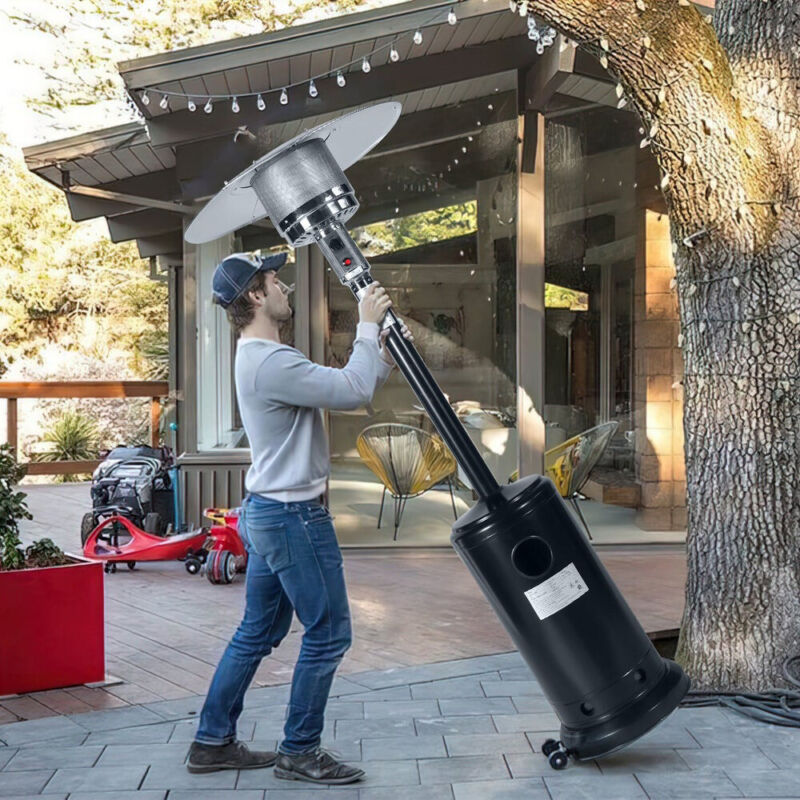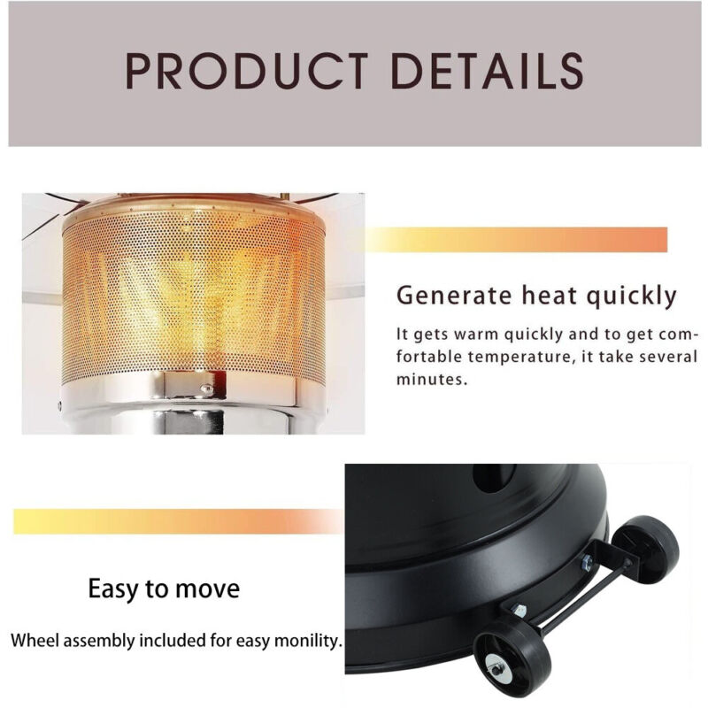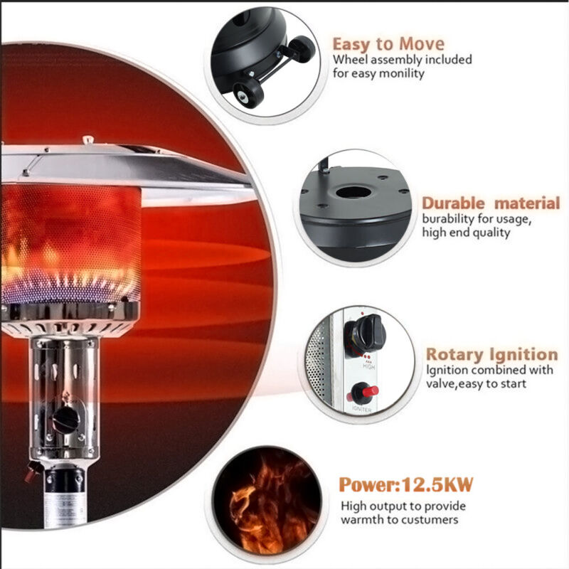Patio Heater Gas Powered Steel Outdoor Heating Catering with Wheels 5-13KW Black