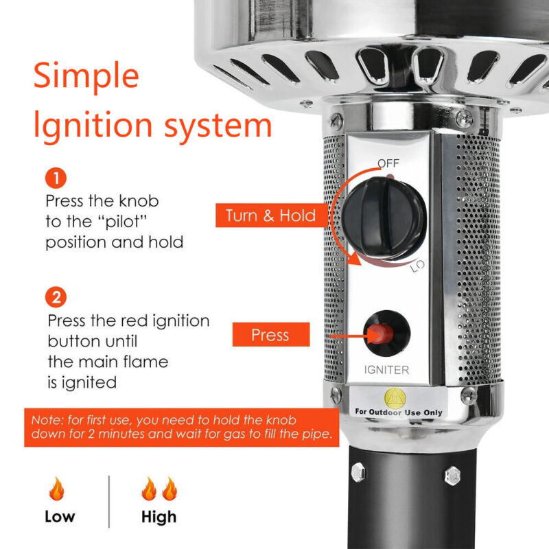 Condition: New: A brand-new, unused, unopened and undamaged item in original retail packaging (where packaging ... Type: Parasol Heater Brand: P.O Indoor/Outdoor: Outdoor Fuel Type: Gas Mounting: Standing Colour: Black Features: Adjustable Power, Piezo Ignition, Variable Heat Settings, Wheeled Material: Metal, Steel Item Height: 225 cm Finish: Glossy Item Width: 46.5-81cm MPN: Does Not Apply Item Weight: 22 kg Items Included: Wheels, Gas Regulator & Hose Style: Modern Power: 5000-13000W BTU Heating Rating: 55000 BTU Energy Efficiency Rating: A+++ Applicable Place: Bars, Restaurants, Gardens, Patios Flux: 450-870g/hr Gas Size: 15KG,32*68CM Wattage: 5KW-13KW EAN: Does not apply