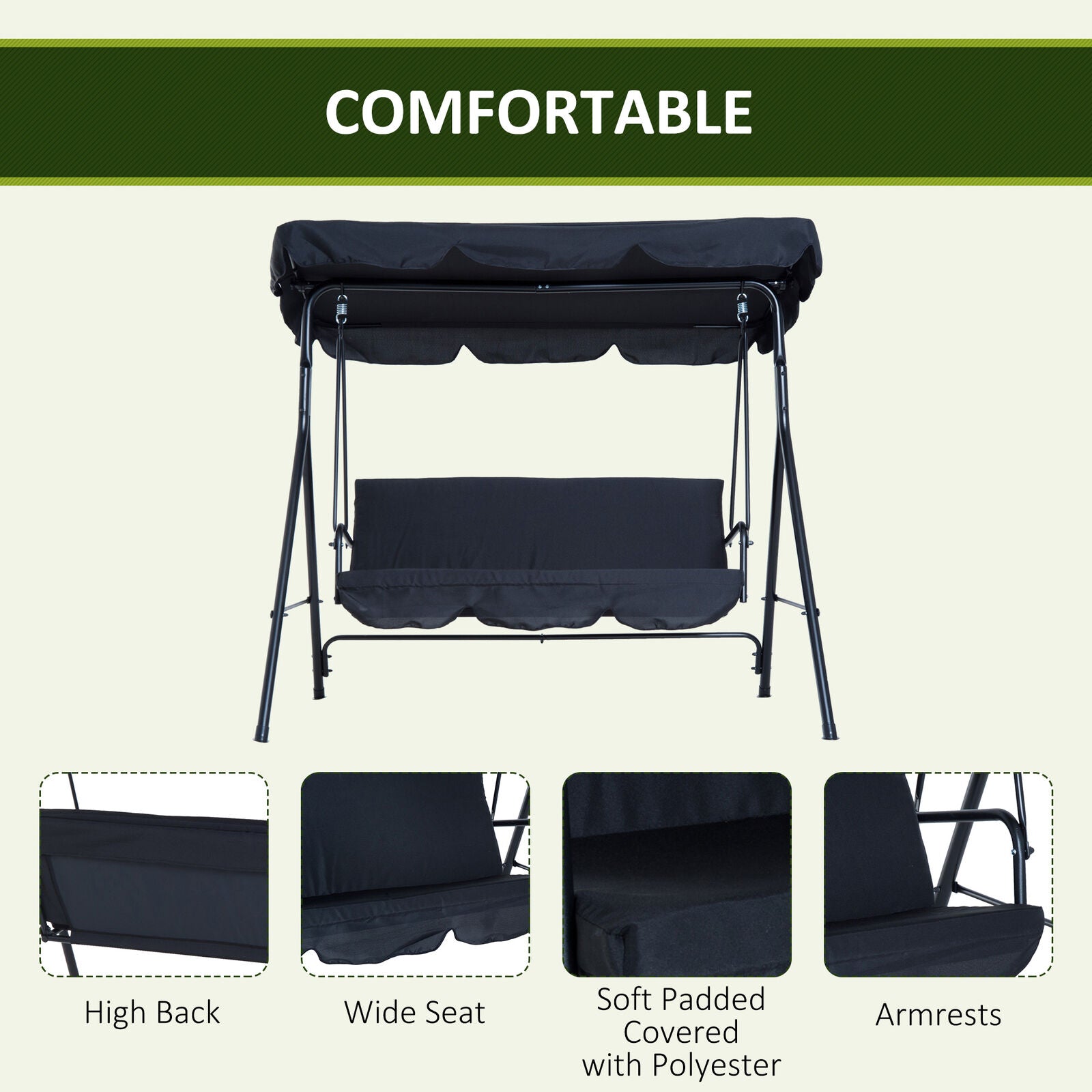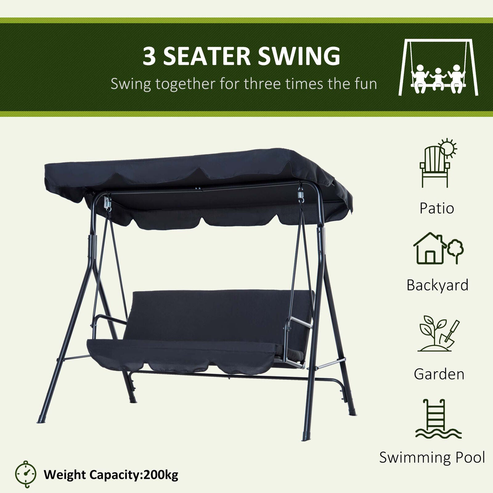 Patio Metal Swing Chair Outdoor Hammock 3 Seater Canopy Garden Bench