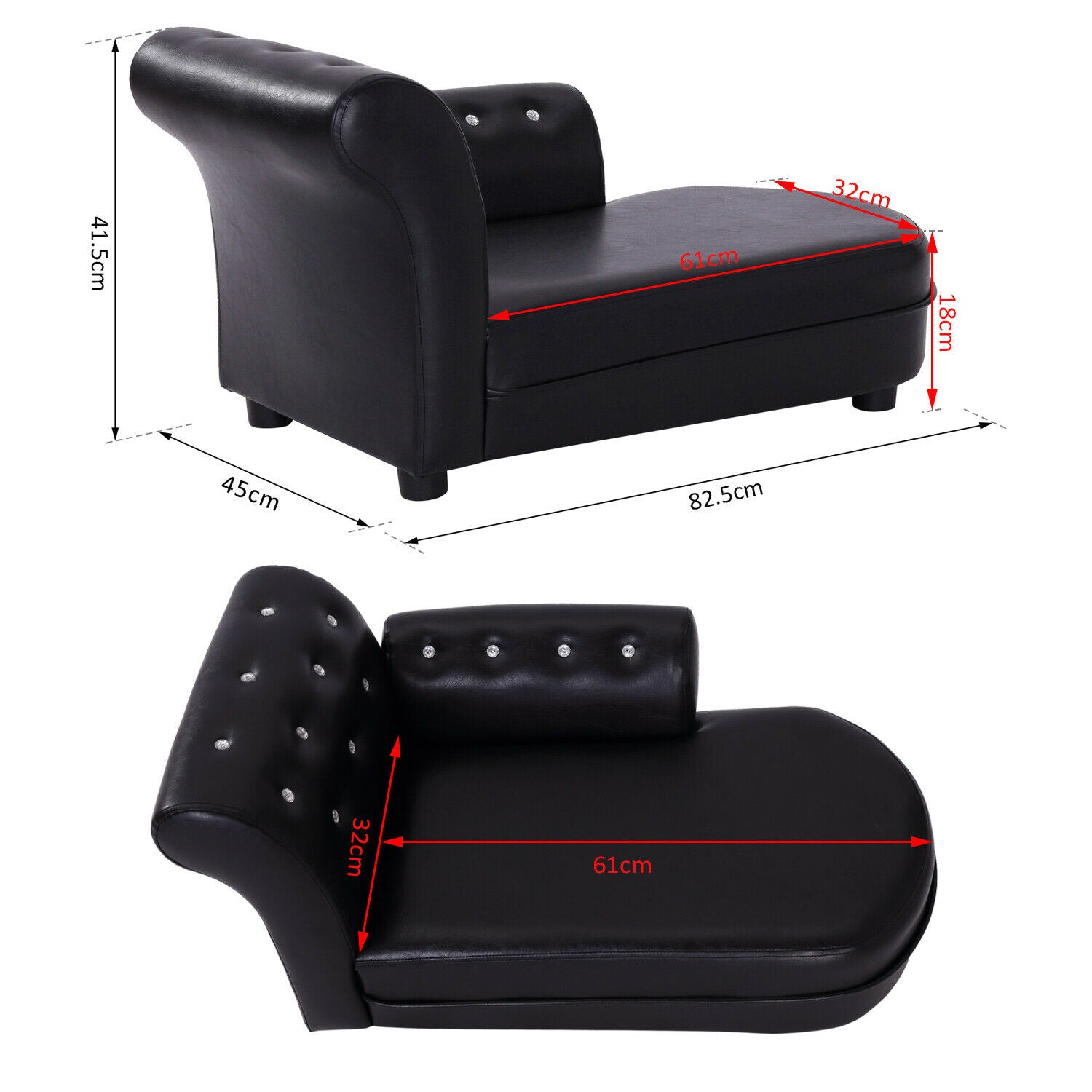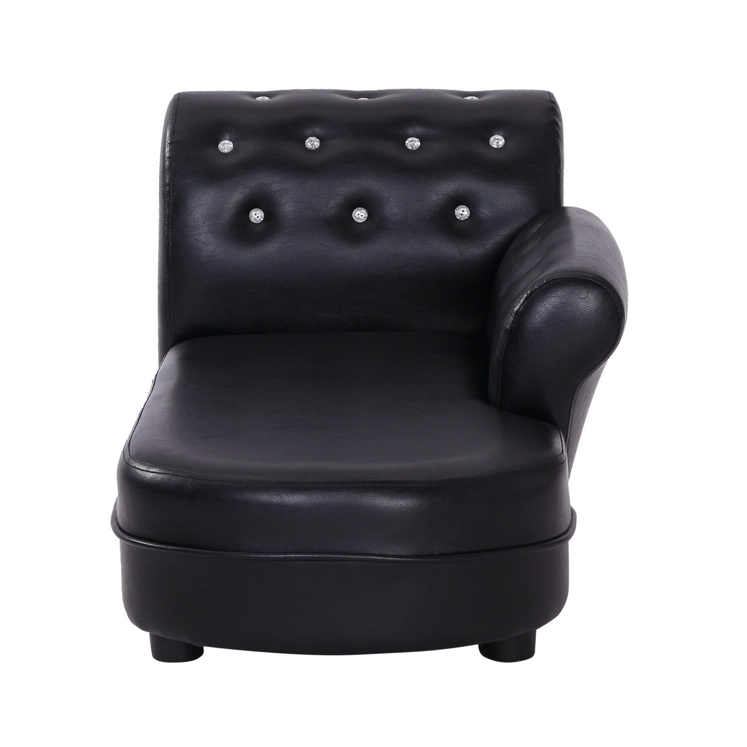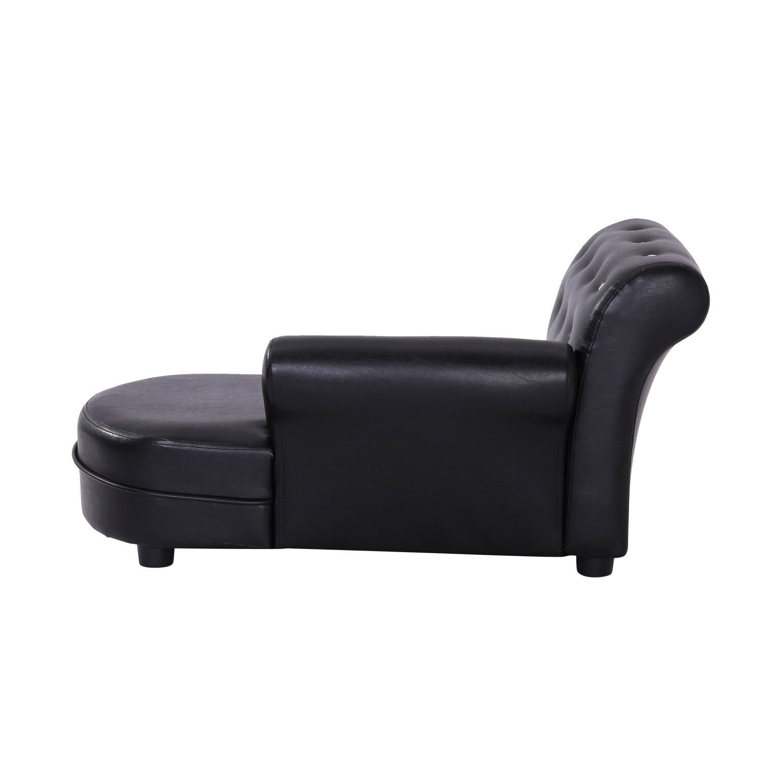 Pawhut Chaise Lounger Dog Cat Puppy Kitty Couch Leather Bed Pet Sofa Black NEW