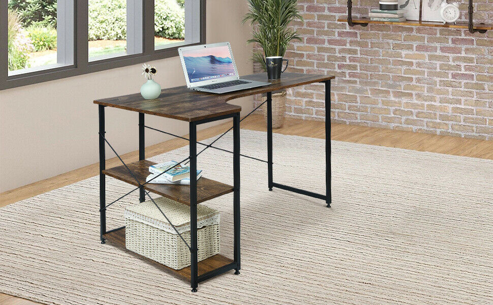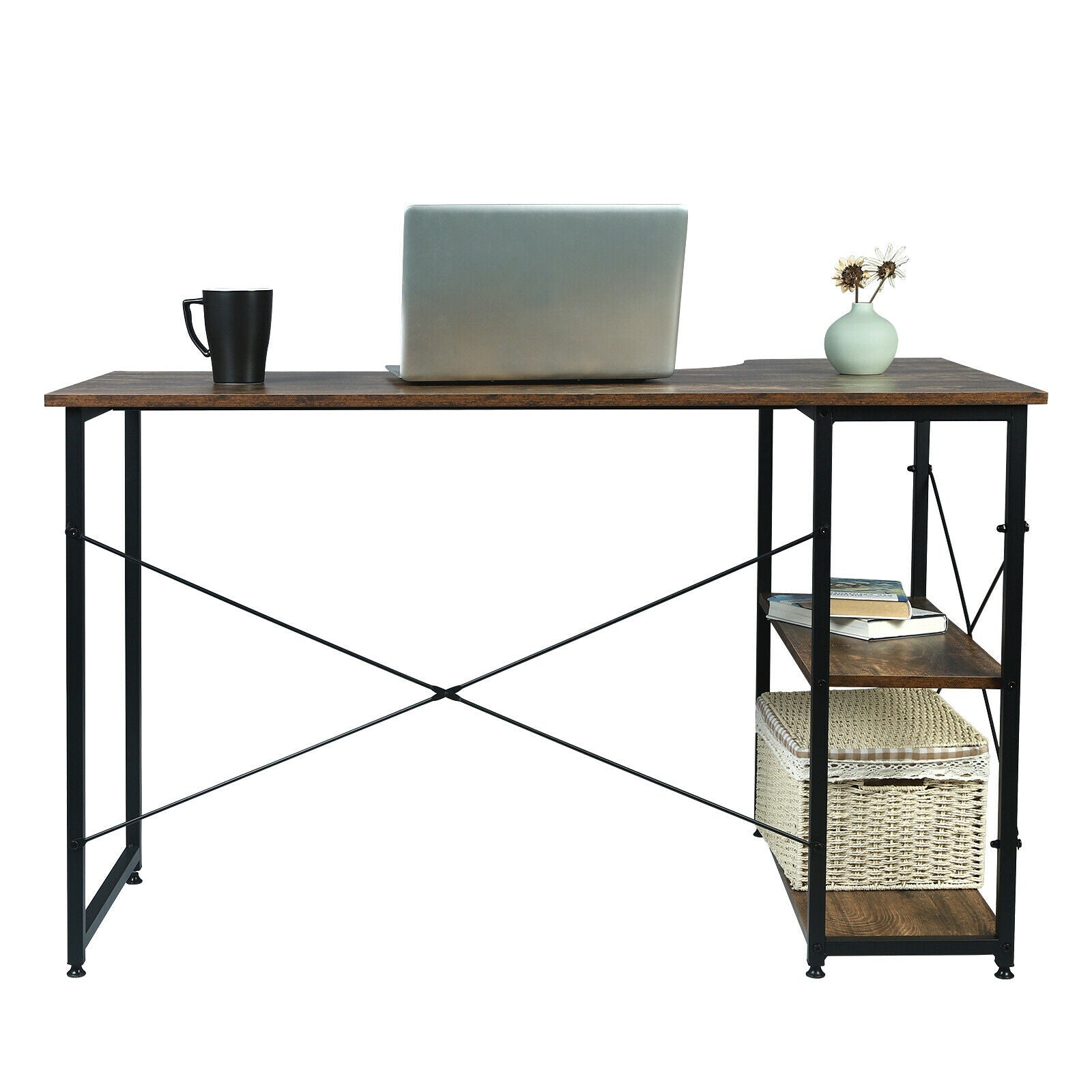 PC Computer Desk Writing Study Table Office Home Workstation Dark Wooden Metal