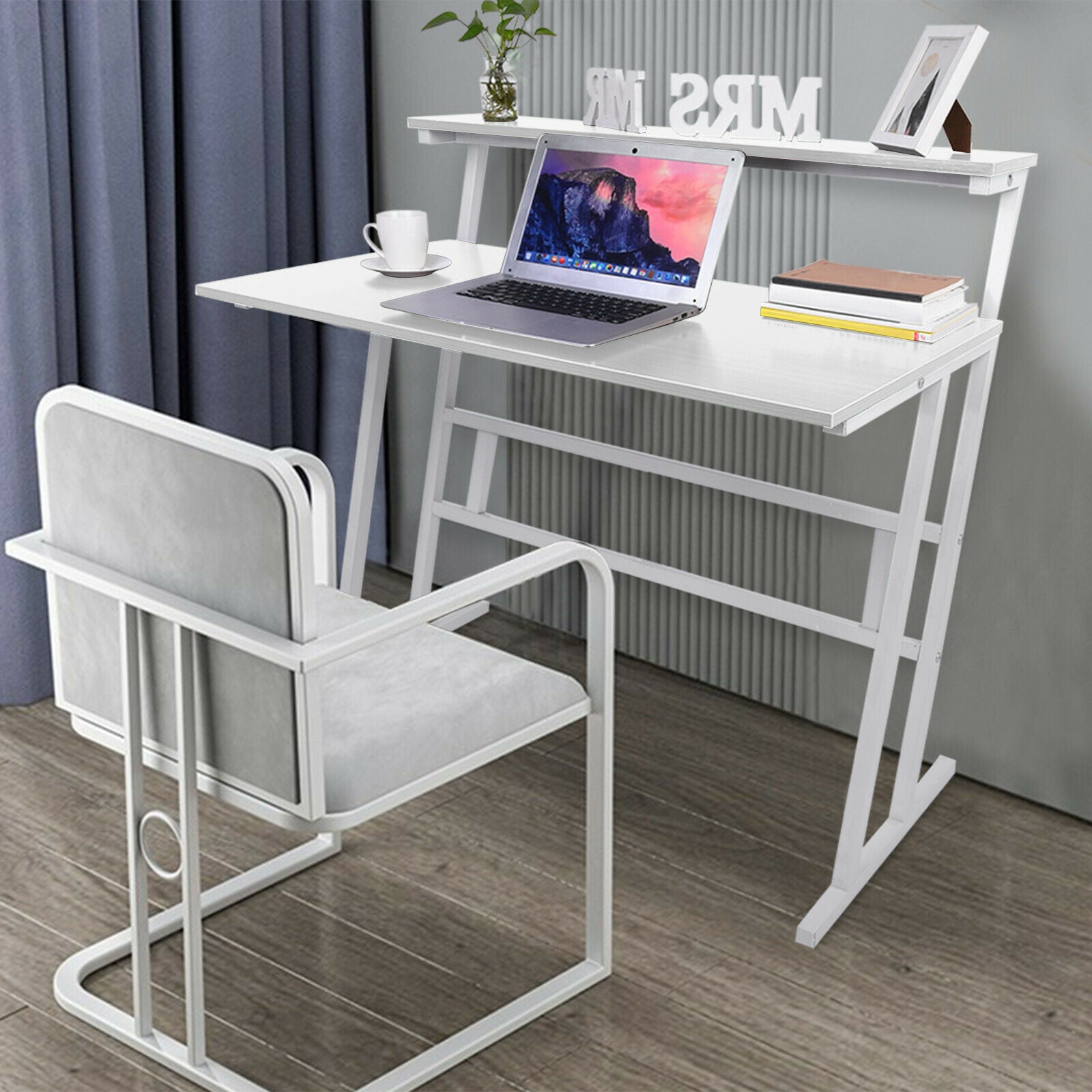 PC Computer Desk Writing Study Table Office Home Workstation Wooden Rise Shelf