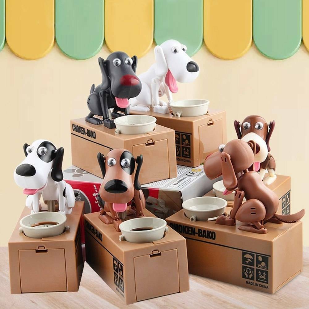 Pet Dog Stealing Eating Coin Money Penny Cents Puppy Storage Bank Saving Box