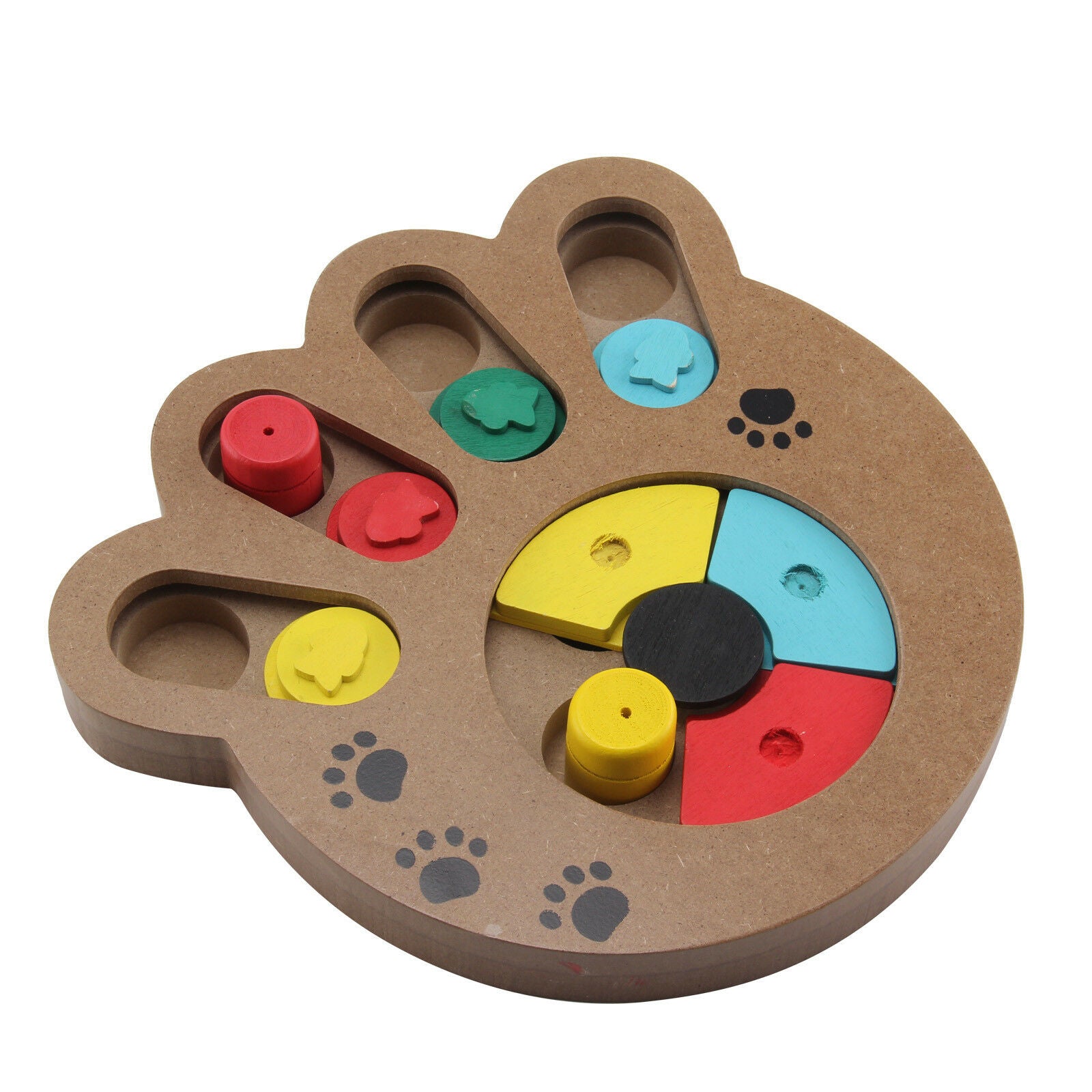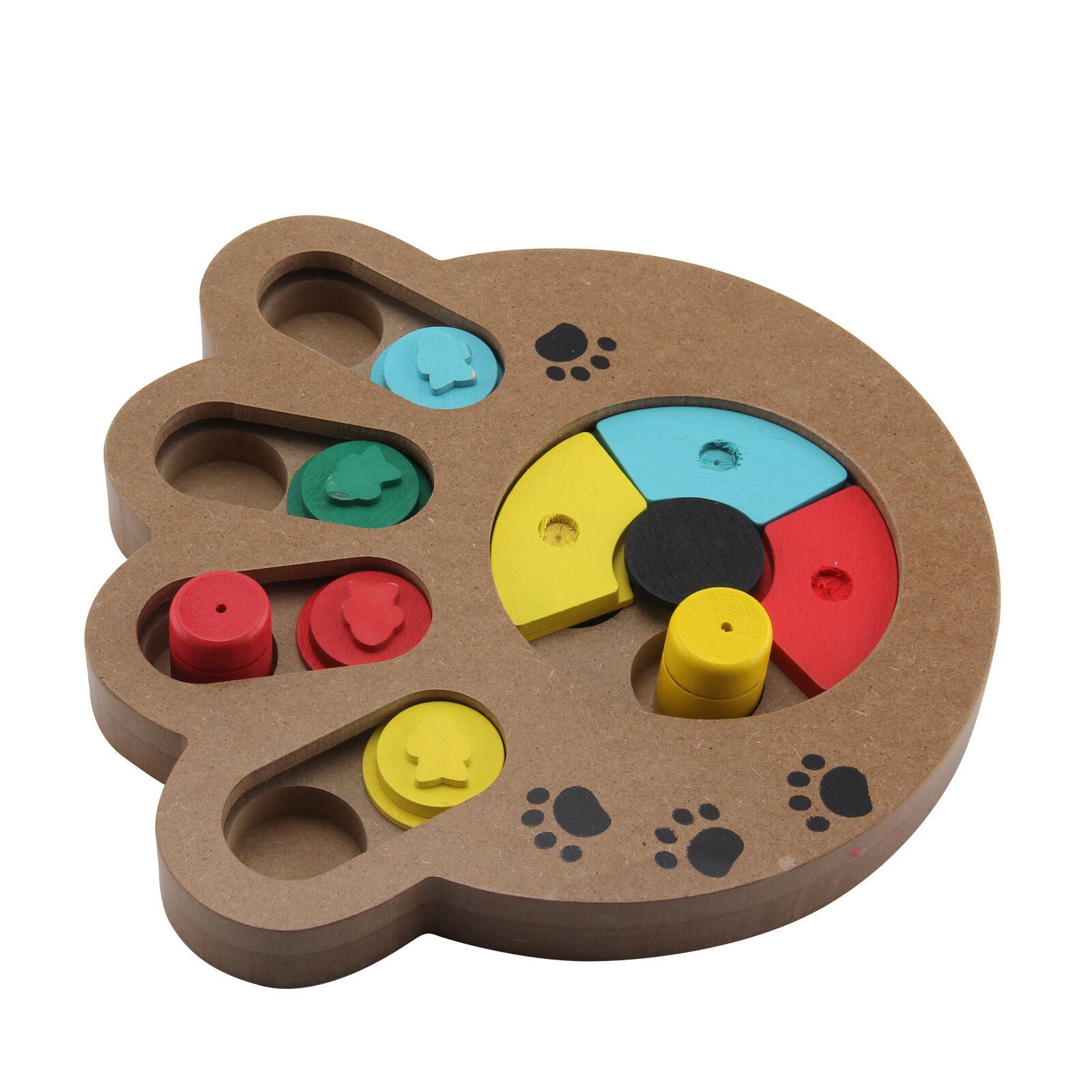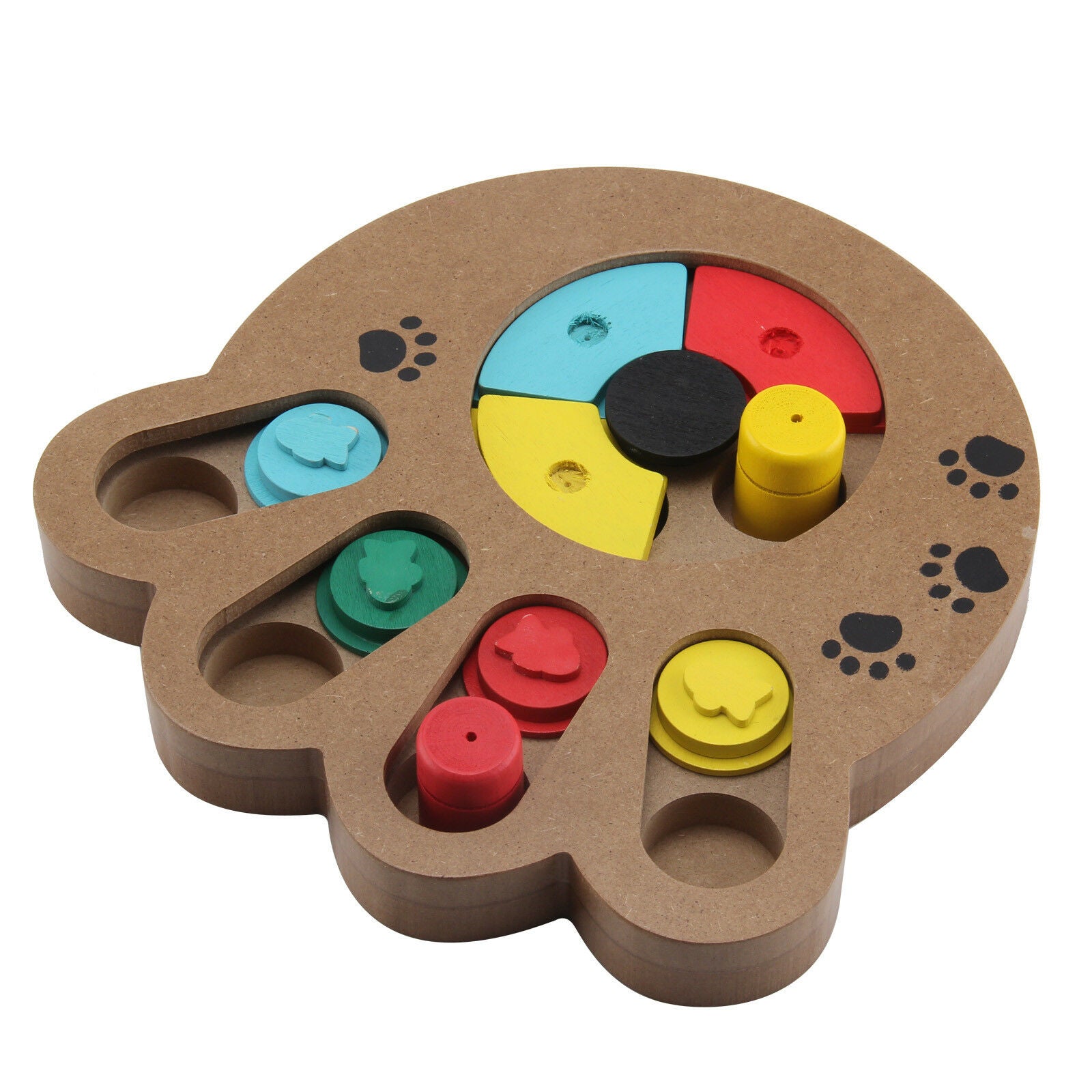 Pet Dog Wooden Game IQ Training Toy Interactive Food Dispensing Puzzle Plate UK