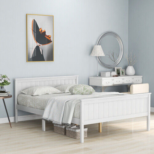 Pine Wood Bed Frame Double Size Bed Solid Wooden Bed Kids Teenagers White QZ