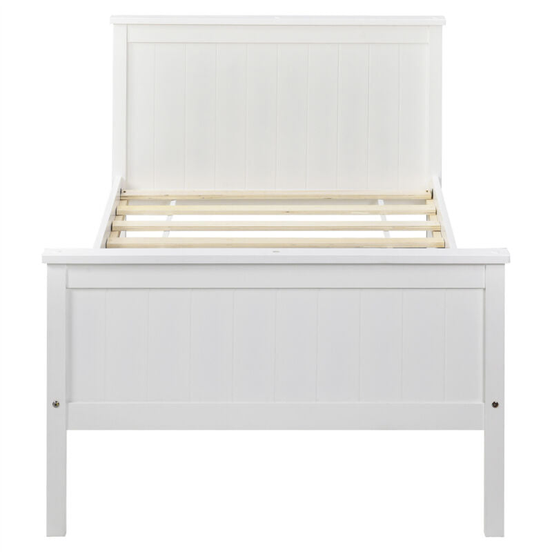 Pine Wood Bed Frame Single Size Bed 90x190 cm Solid Wooden Bed Set Shaker White