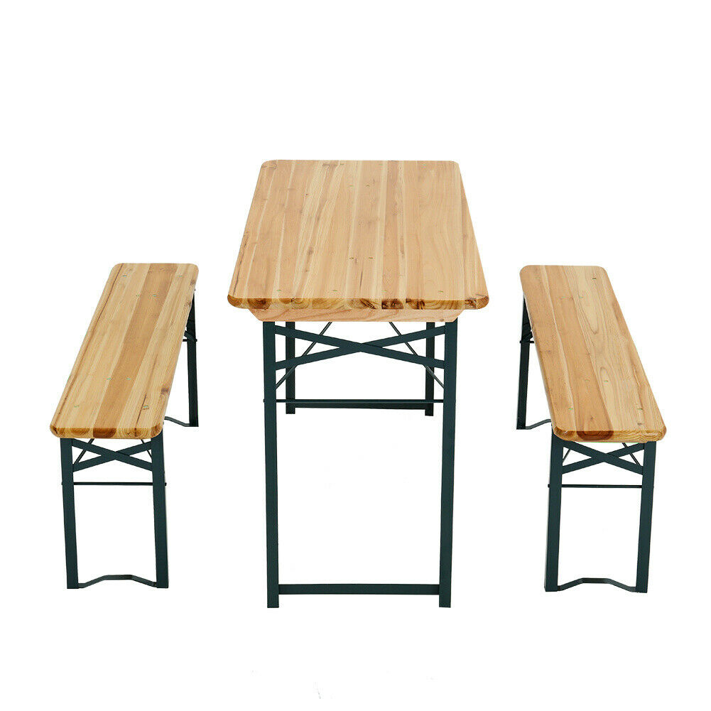 Pine Wood Dining Table and 2 Bench Set Bistro Beer Table & Chairs Outdoor Garden