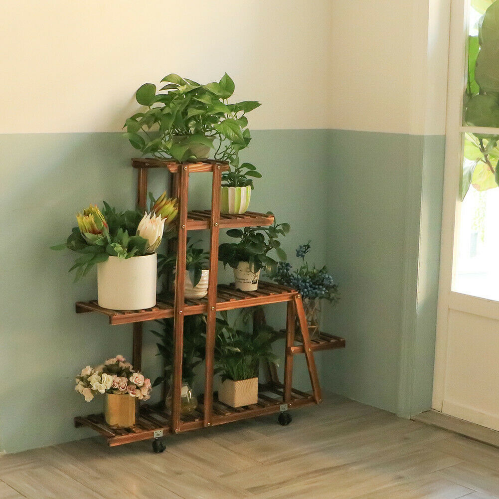 Pine Wooden Multi Tiers Plant Care Flower Stand Multilayer Display Shelf Indoor