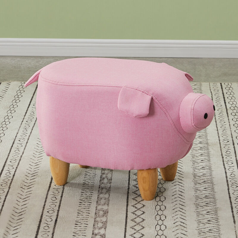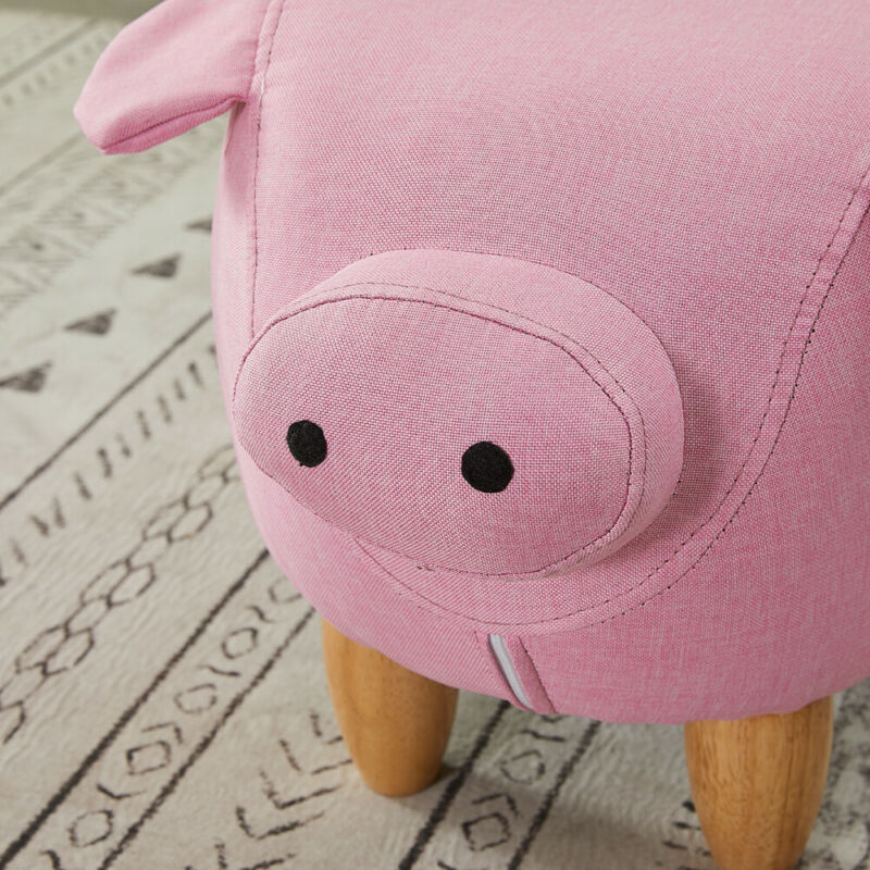 Pink Fabric Pig Animal Footstool Stools Ottomans With Wood Legs Living room Toy