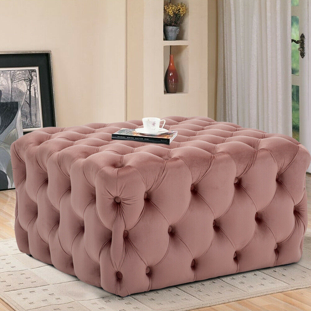 Pink Velvet Pouffe Ottoman Chesterfield Footstool Button Seat Coffee Table Stool