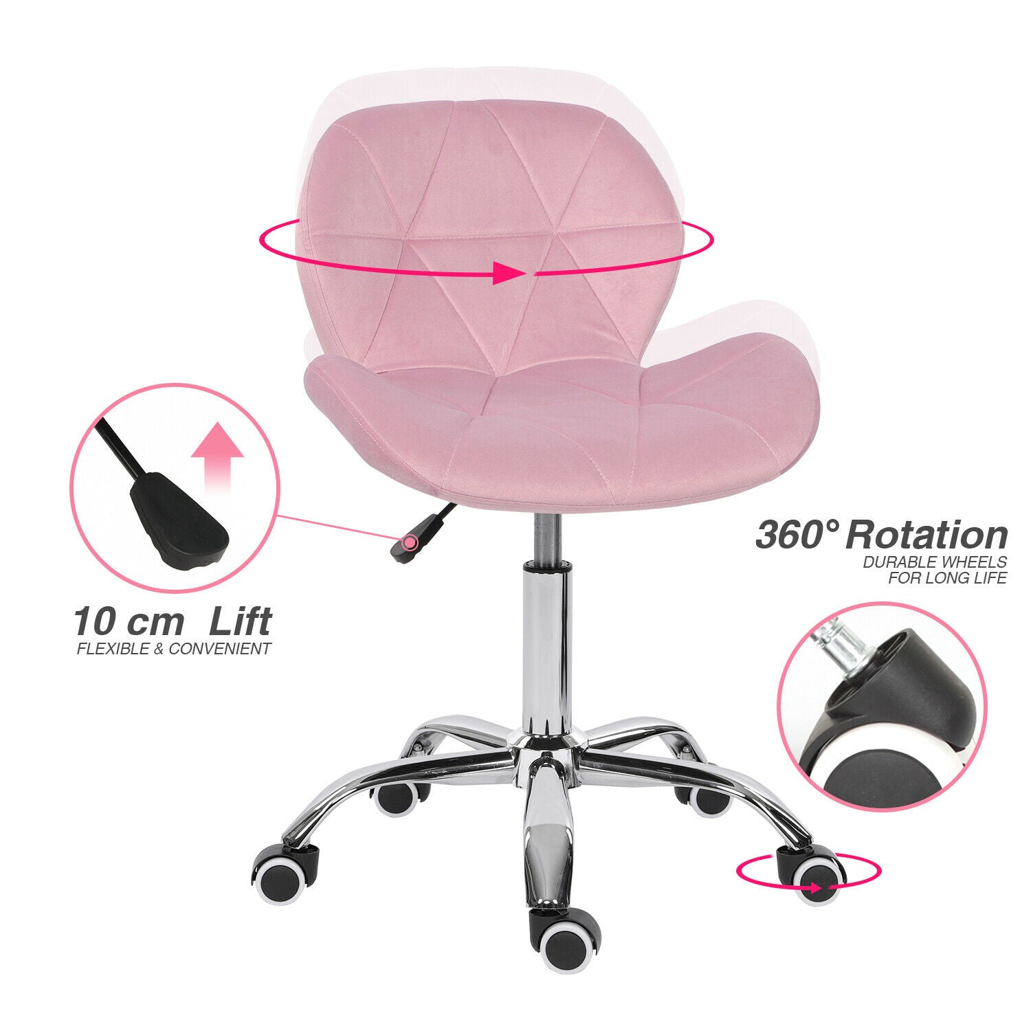 Pink Velvet Swivel Dressing Chair Office Computer Desk Chair Lift Home Office UK