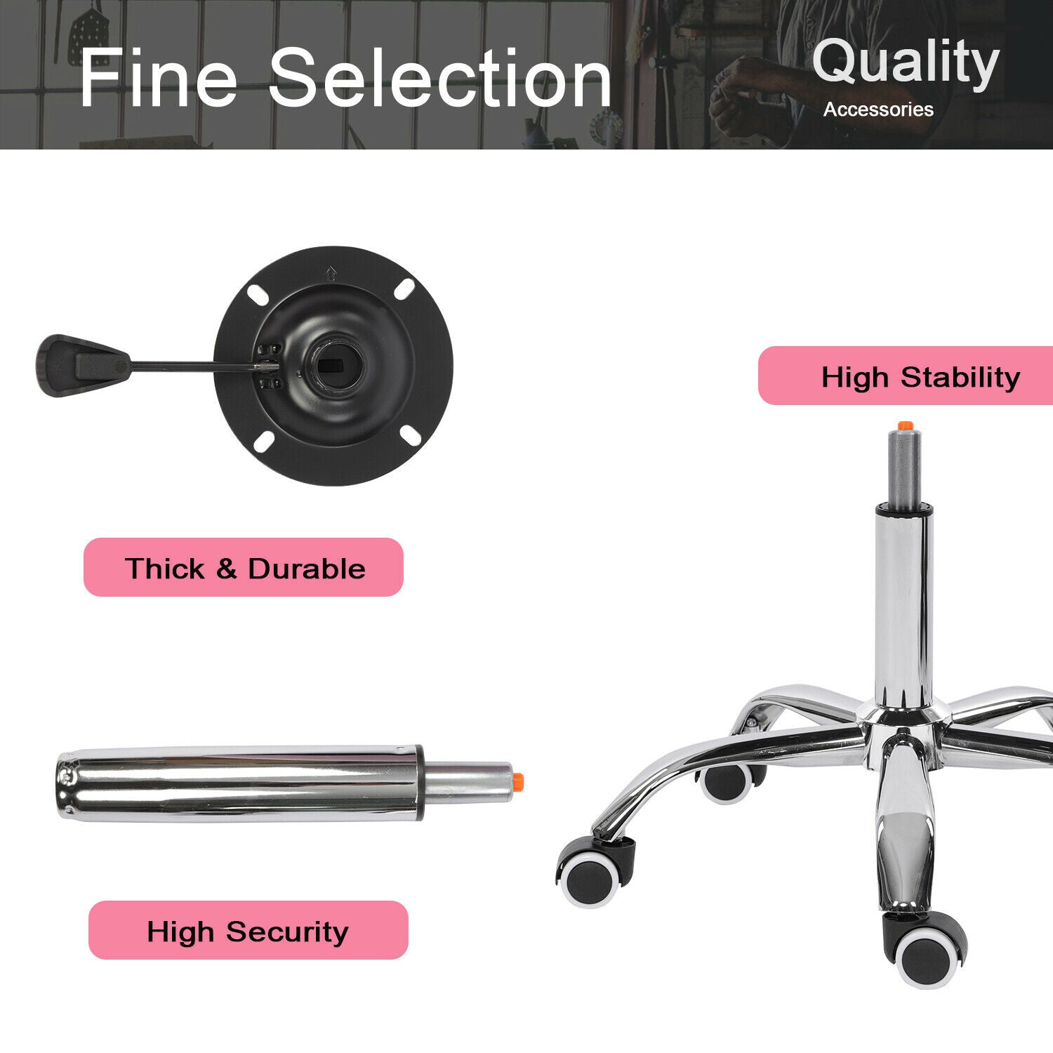 Features: Adjustable, Smooth, 5-Legged, Chair Base, Chair Gas Lift, Ergonomic, Low Back, Padded Seat, Swivel
