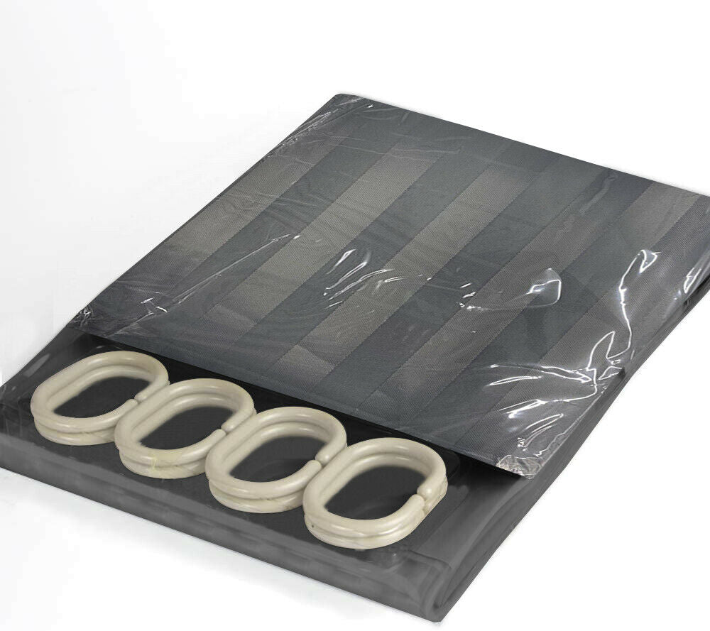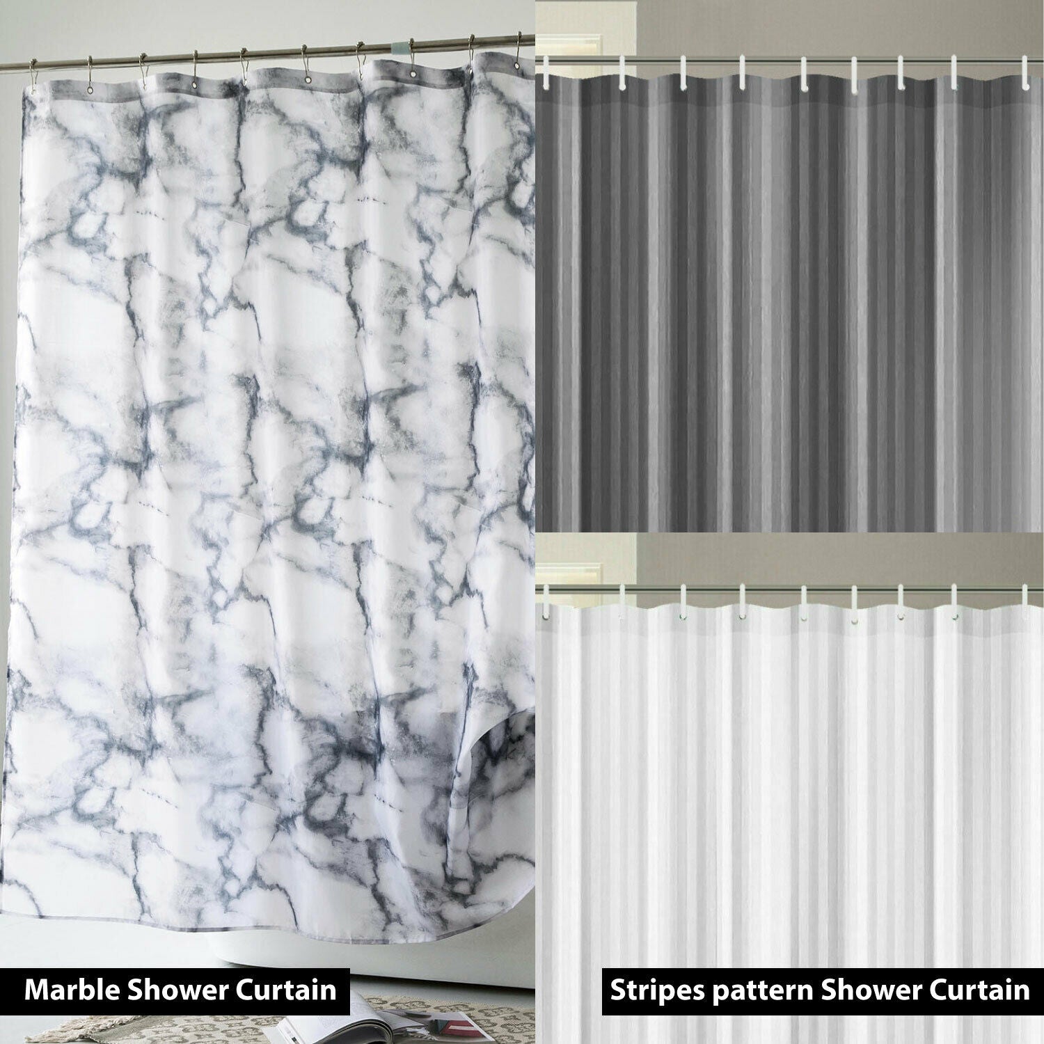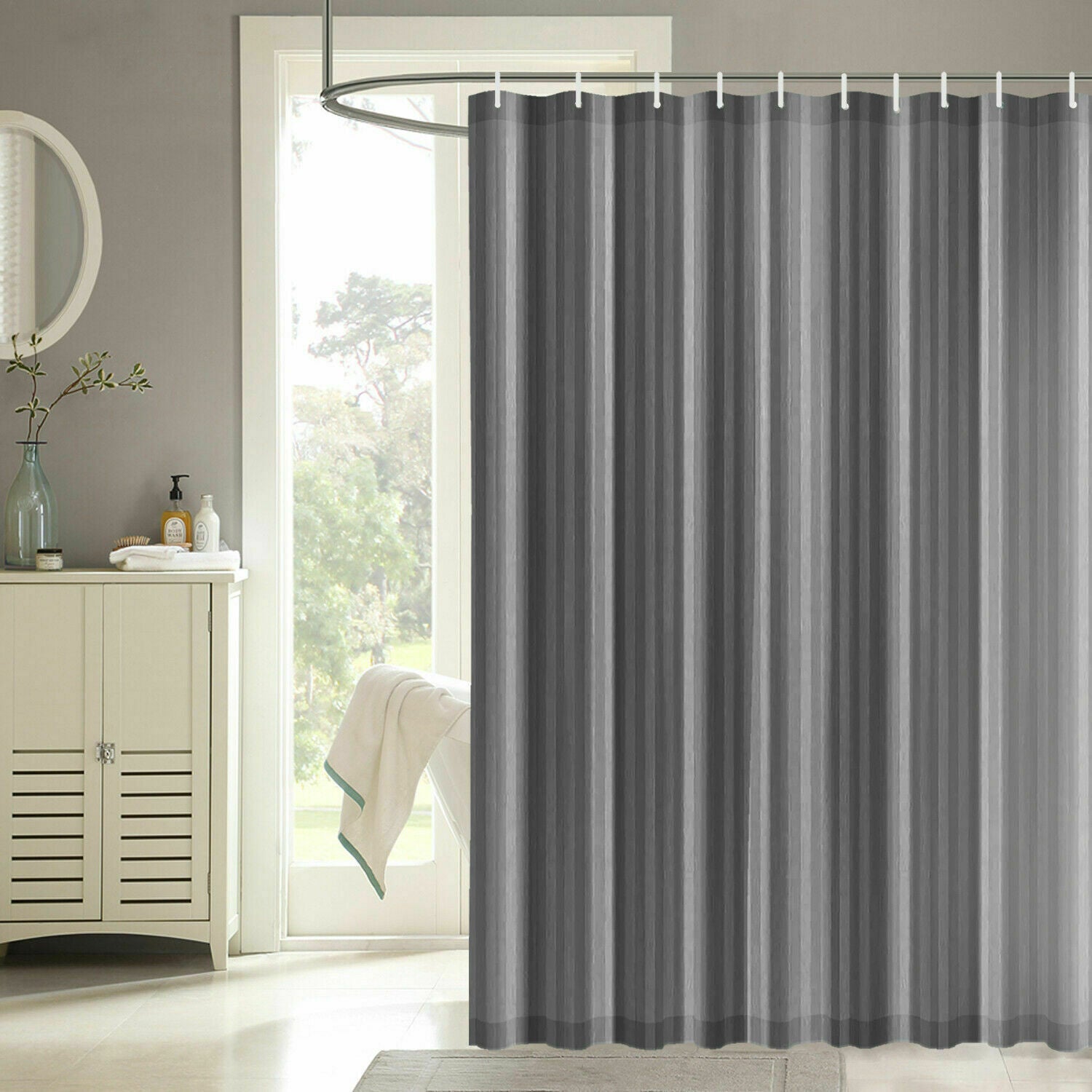 Plain Grey Shower Curtain With Free Hooks New Waterproof Fabric Bathroom Curtain