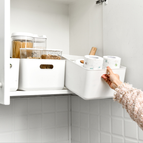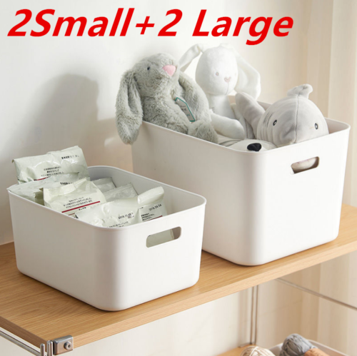 Plastic 2 Large+2 Small Storage Basket Studio Bathroom Kitchen Home Office Boxes