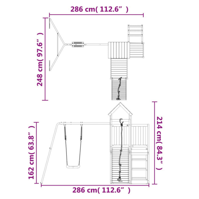 Playhouse with Climbing Wall Swing Solid Wood P9L3