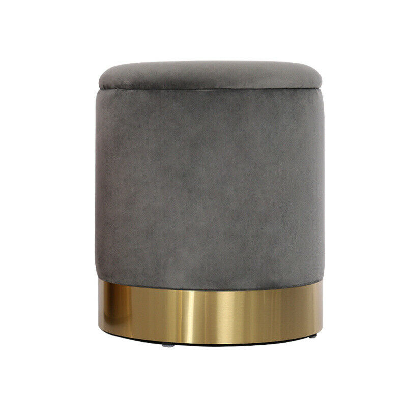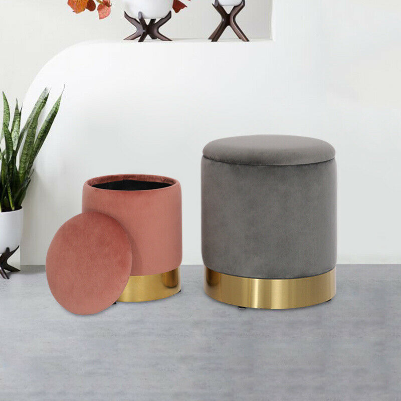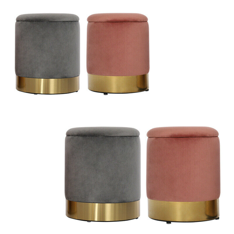 Plush Velvet Metal Golden Trim Ottoman Footstool Storage Box Seat Living Room UK