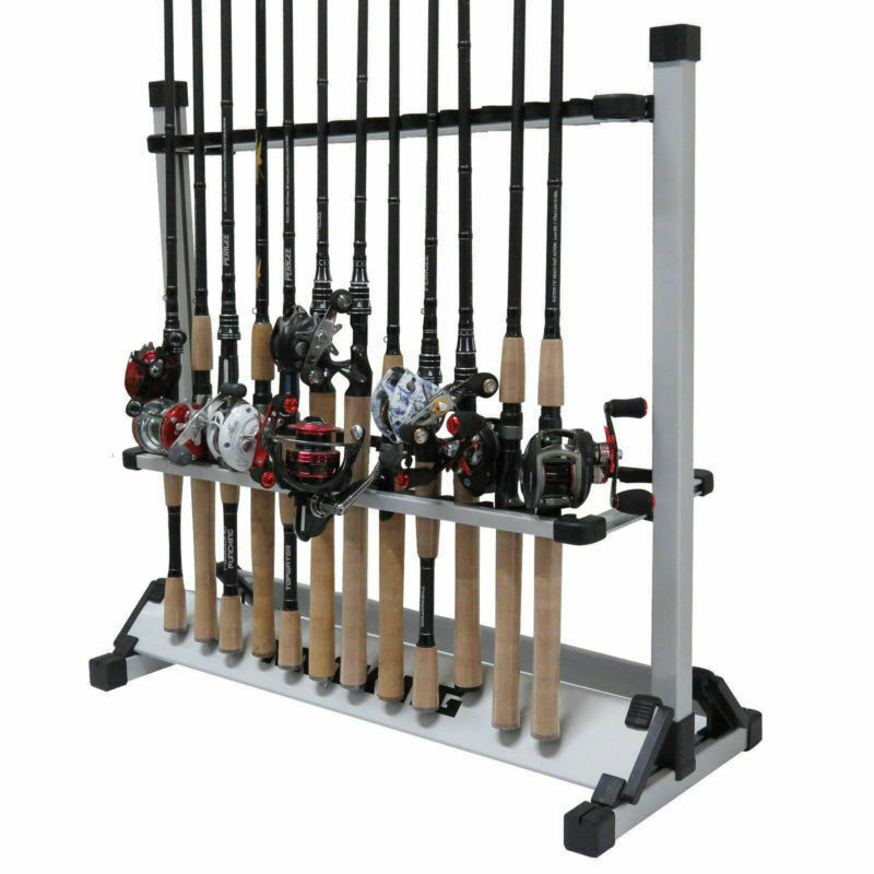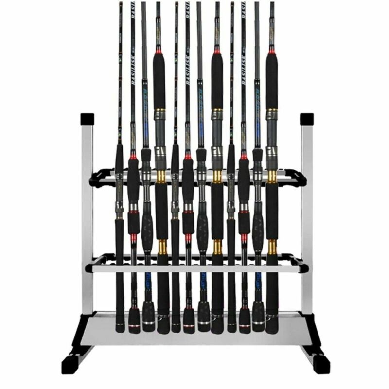 Portable 24 Rods Rack Fishing Rod Pole Holder Stand Organizer Storage Tool Black