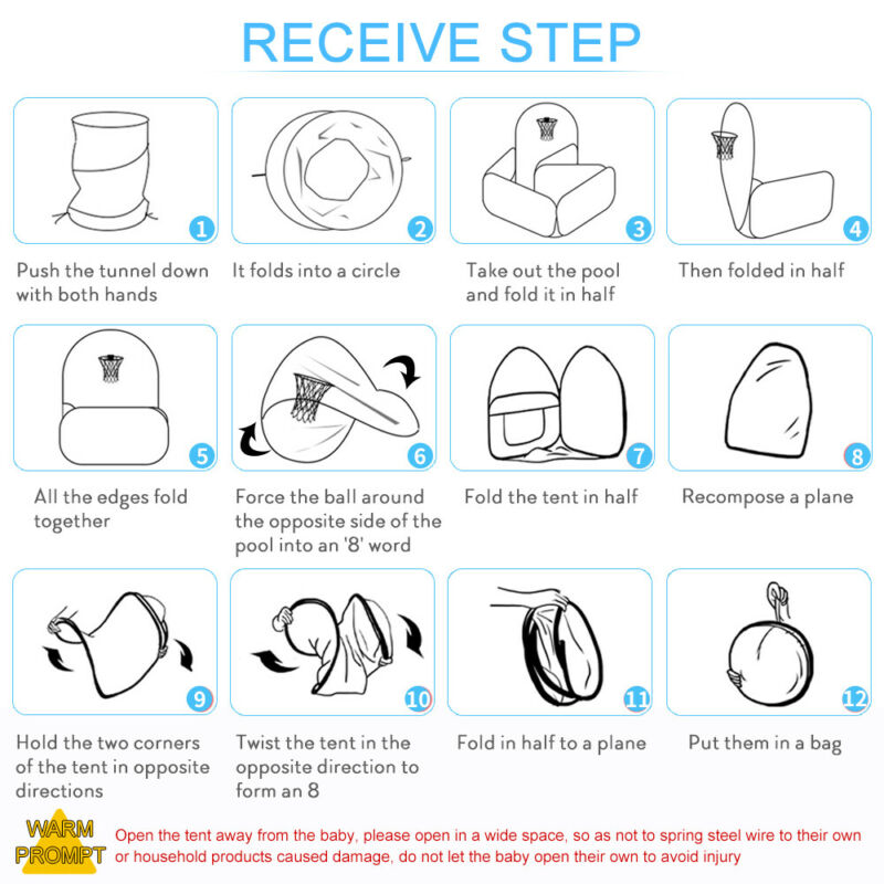 Portable 3 in 1 Kids Baby Play Tent Tunnel Ball Pit Playhouse Ocean Balls Pool